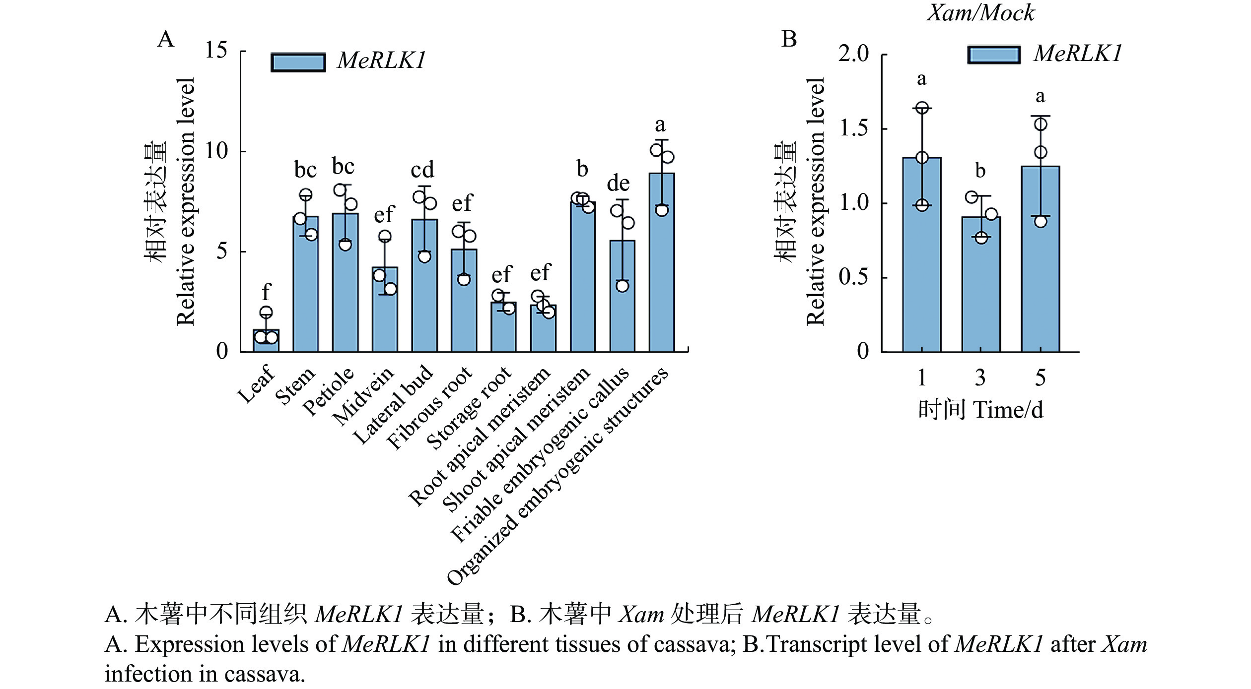 为了探究木薯(Manihot esculenta)ERF基因家族Ⅶ亚族在木薯应对生物胁迫中的潜在功能,本研究对该家族进行进行了全基因组扫描,在木薯基因组中鉴定了161个ERF基因,将其分为13个亚族。对Ⅶ亚族成员进行保守结构域、启动子顺式作用元件、互作蛋白、靶基因及表达模式分析。结果表明,该亚族成员均含有一个保守的AP2结构域,其启动子区域包含13种与植物生长发育、环境胁迫响应相关的顺式作用元件。表达模式分析发现,MeERF46、MeERF133、MeERF92基因均积极响应Xpm侵染,其中MeERF92表达量变化最显著;WGCNA和蛋白互作网络分析显示MeERF92可能参与了氧化应激过程,而MeERF133广泛参与了糖酵解过程。以上结果为深入研究ERF在木薯应答生物胁迫中的功能和作用机制提供了候选基因。