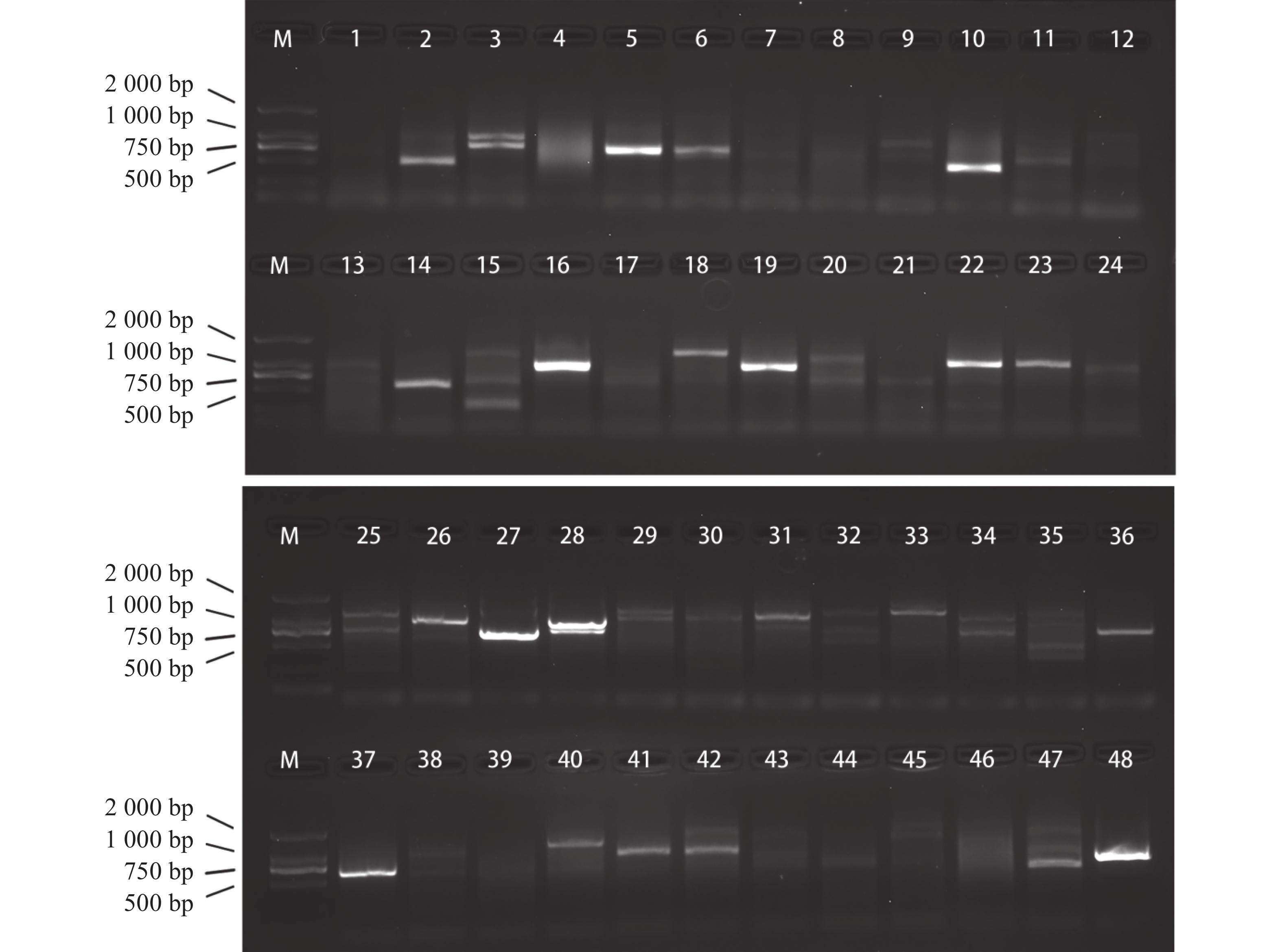 为便于水稻细菌性条斑病菌(Xanthomonas. oryzae pv. oryzicola, Xoc)的早期快速检测,本研究根据GenBank中公开报道的水稻细菌性条斑病菌特异性基因序列(序列号:XOCgx_RS03090)设计了重组酶聚合酶扩增(RPA)引物、Exo荧光探针组合及nfo探针组合,并构建含有Xoc基因序列的重组质粒作为阳性对照,建立了水稻细菌性条斑病菌的重组酶聚合酶扩增法(Exo-RPA)和侧流层析试纸条检测法(LFD-RPA)的技术体系,并评估了上述两种不同终端RPA检测方法的灵敏度和特异性,通过优化反应温度、反应时间明确了其对RPA方法扩增效果的影响。结果表明,Exo-RPA和LFD-RPA检测法对水稻细菌性条斑病菌检测的灵敏度均为4.96 copies·μL−1,反应的最佳温度均为39 ℃;优化后的Exo-RPA方法在12 min内检测出水稻细菌性条斑病菌,优化后的LFD-RPA可以在5 min内检测出水稻细菌性条斑病菌;与其他植物病原菌菌株一起进行检测,RPA检测方法可特异地检测出目标病原菌,该方法灵敏度高,特异性强,检测速度快,有望在水稻细菌性条斑病病原监测与病害的早期诊断上得到应用。