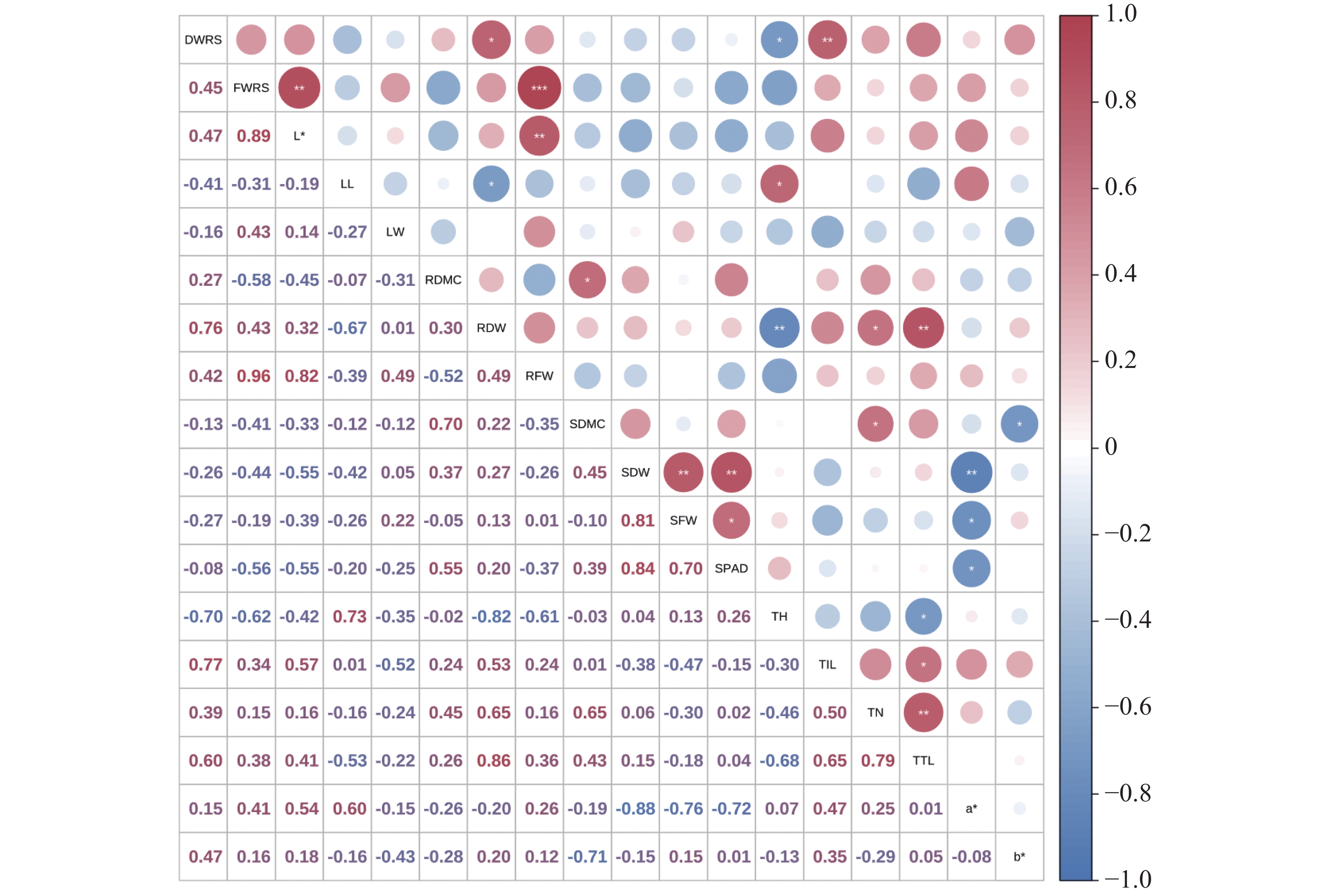 为探究海雀稗(Paspalum vaginatum)的耐低氮特性,本研究以10份海雀稗种质为试验材料,采用水培法并设置全氮(5.0 mmol·L−1)和1/100氮(0.05 mmol·L−1) 2个氮浓度处理30 d,测定处理后的叶绿素含量、地上部鲜质量、草层高度等18个农艺性状并进行方差分析,比较探究10份海雀稗种质的耐低氮特性,对种质低氮耐受性进行综合评价。结果表明,相比正常氮处理,低氮处理的地上部鲜质量、地上部干质量、分蘖总长度和分蘖数等指标显著降低;根冠鲜质量比、根冠干质量比、地上部干物质含量、地下部干物质含量等指标显著增加。通过相关性分析、主成分分析和隶属分析,筛选出耐低氮的海雀稗种质17USA-03、17HN-39。
