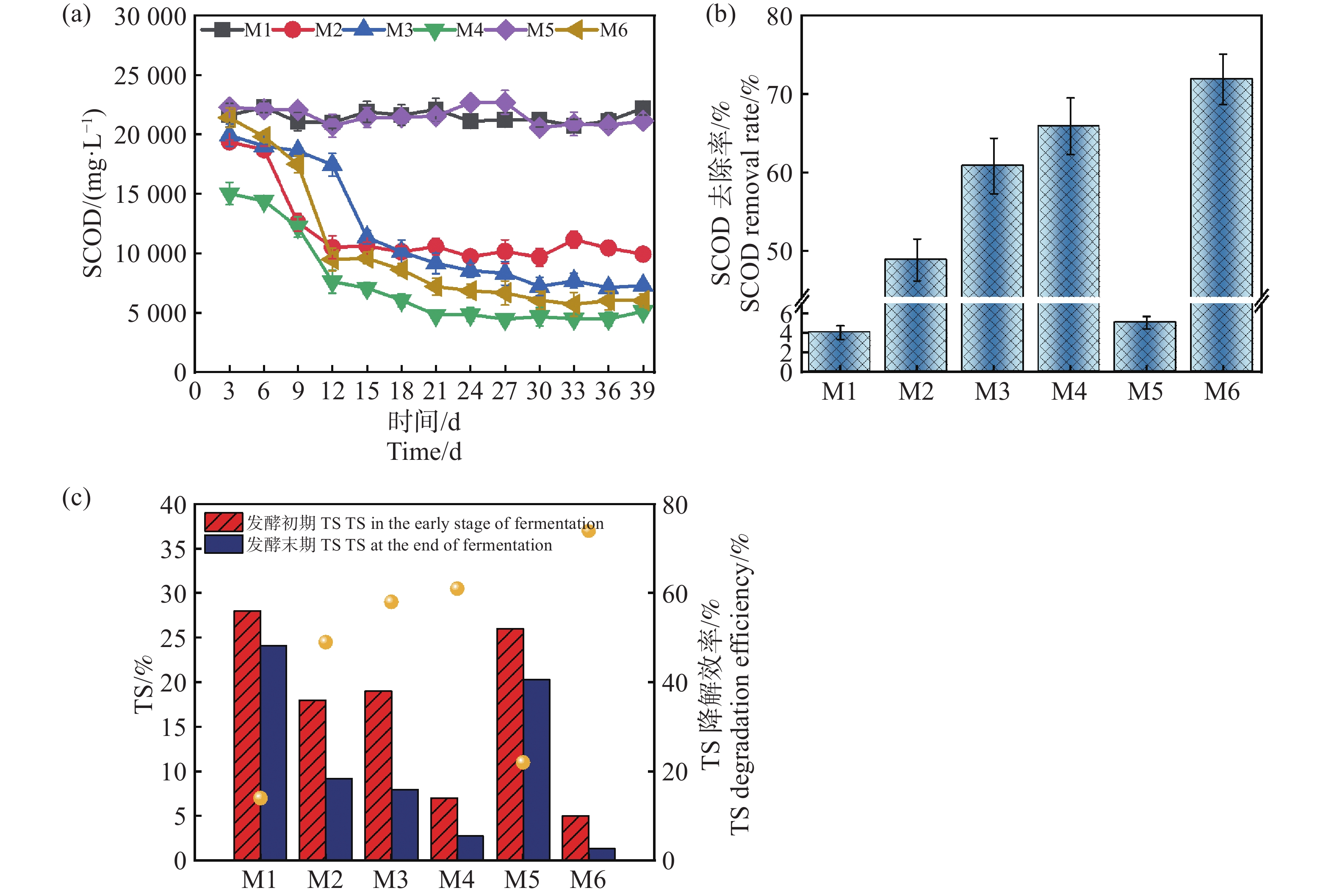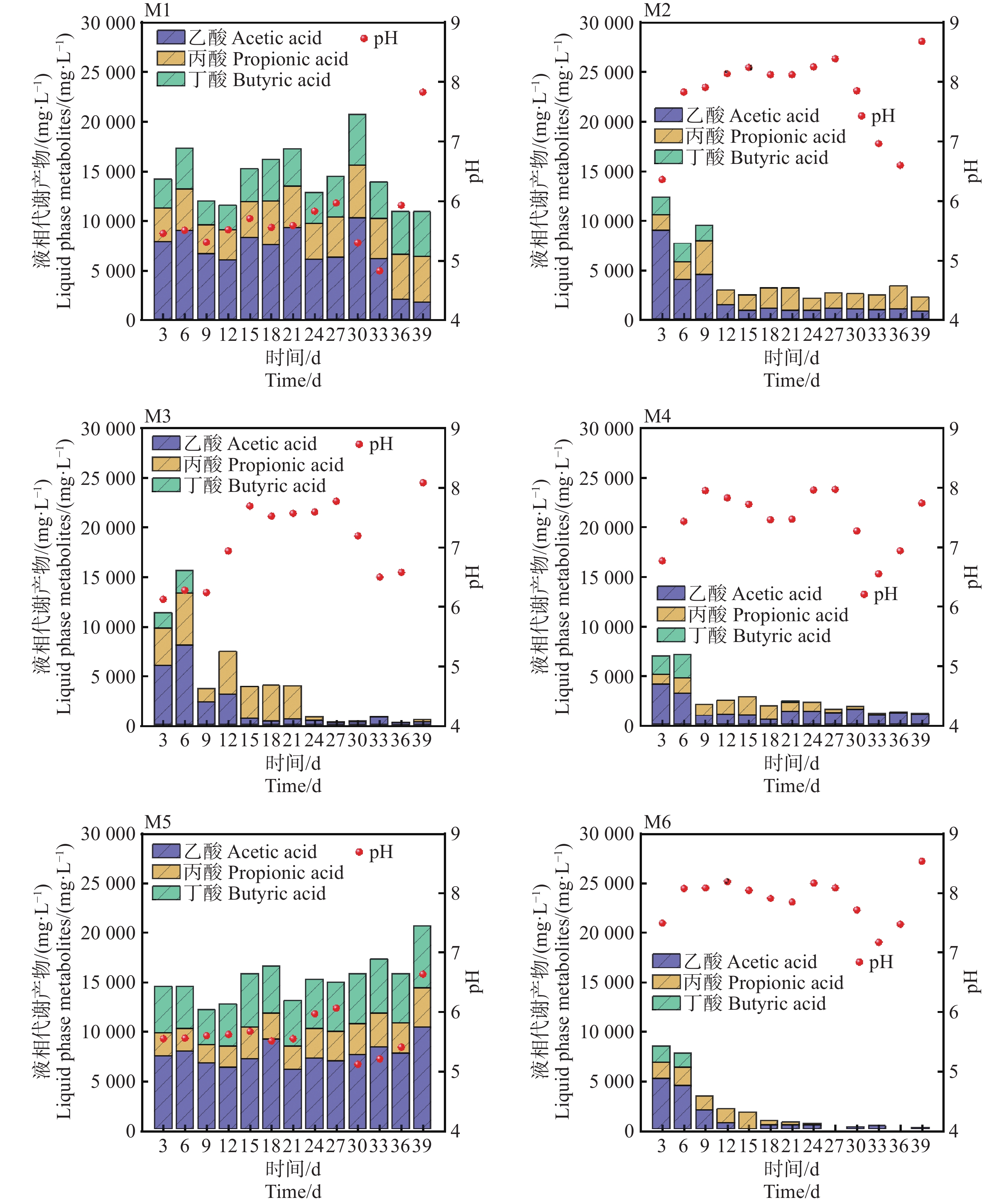 本文以木薯(Manihot esculenta Crantz)加工产生的木薯渣有机固废为研究对象,探究其在中温(37±1)℃、高温(60±1)℃下,不同发酵TS (Total Solids)质量分数分别为10%、20%和30%及接种量质量分数为30%和50%的序批式发酵特性,明确了木薯渣厌氧消化的产气潜力,产气规律及微生物群落分布特征,并通过修正的Gompertz模型对累积产甲烷量进行了相关性拟合。结果表明,高温组产气效率显著高于中温组,且高温发酵仅需3~6 d即达到产气峰值,相较中温缩短6~9 d。以TS质量分数为10%、接种量质量分数为50%的实验组的产气量、甲烷含量最好,平均甲烷体积分数为54%,原料产气率为666.48 mL·g−1TS,产甲烷率为346.96 mL·g−1TS,SCOD(Soluble Chemical Oxygen Demand)降解率达到71.25%。在探究微生物群落分布特征中,不同试验组在细菌/古细菌门水平和属水平的差异中优势菌群受温度和TS影响较大,高温条件能够促进氢营养型甲烷代谢的优势菌群如Methanobacterium(49.84%)和Methanoculleus(24.92%)显著富集,使反应系统获得更好的甲烷收率。从结果可以得出,以木薯渣单独作为沼气发酵原料,控制适宜的TS浓度,提升接种量和发酵温度,能够在短时间内获得理想的沼气回收率。该研究结果可为木薯渣厌氧发酵的工艺优化提供参考。