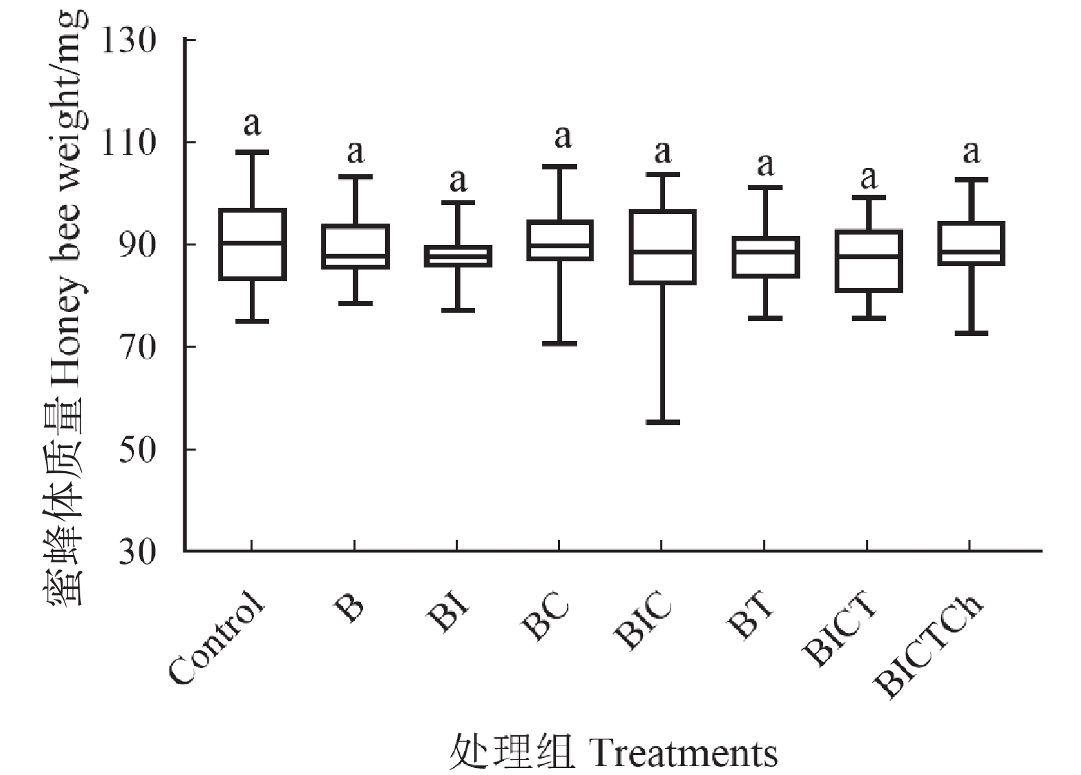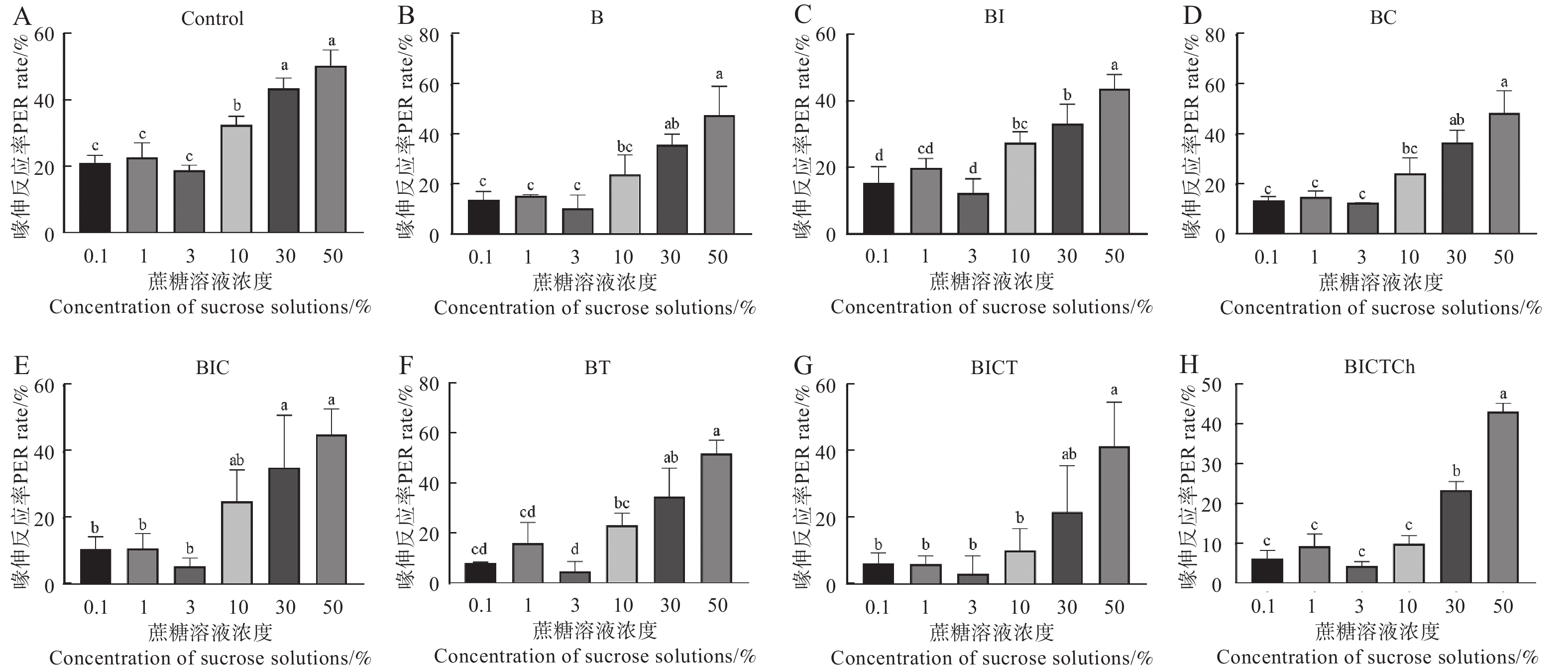 蜂产品中的农药残留对蜜蜂健康的危害日益受到关注。喙伸反应(proboscis extension reflex,PER)适用于评价农药对蜜蜂行为的影响。本研究旨在明确中华蜜蜂工蜂长期经口暴露于蜂粮中残留剂量的联苯菊酯及其混剂对其嗅觉和学习能力的影响。结果表明,经口饲喂含残留剂量联苯菊酯及其混剂(单独或混合)的蜂粮10 d后,多种药剂处理组显著降低工蜂的存活率,但对其体重无显著性影响。处理组工蜂对低浓度蔗糖溶液(质量分数分别为0.1%、1.0%、3.0%和10.0%)的敏感性显著降低,学习能力也显著降低。因此,蜜蜂长期同时暴露于多种不同作用机制的杀虫剂和杀菌剂残留,对其存活和学习能力产生显著负面影响,进而威胁到蜂群的健康发展。