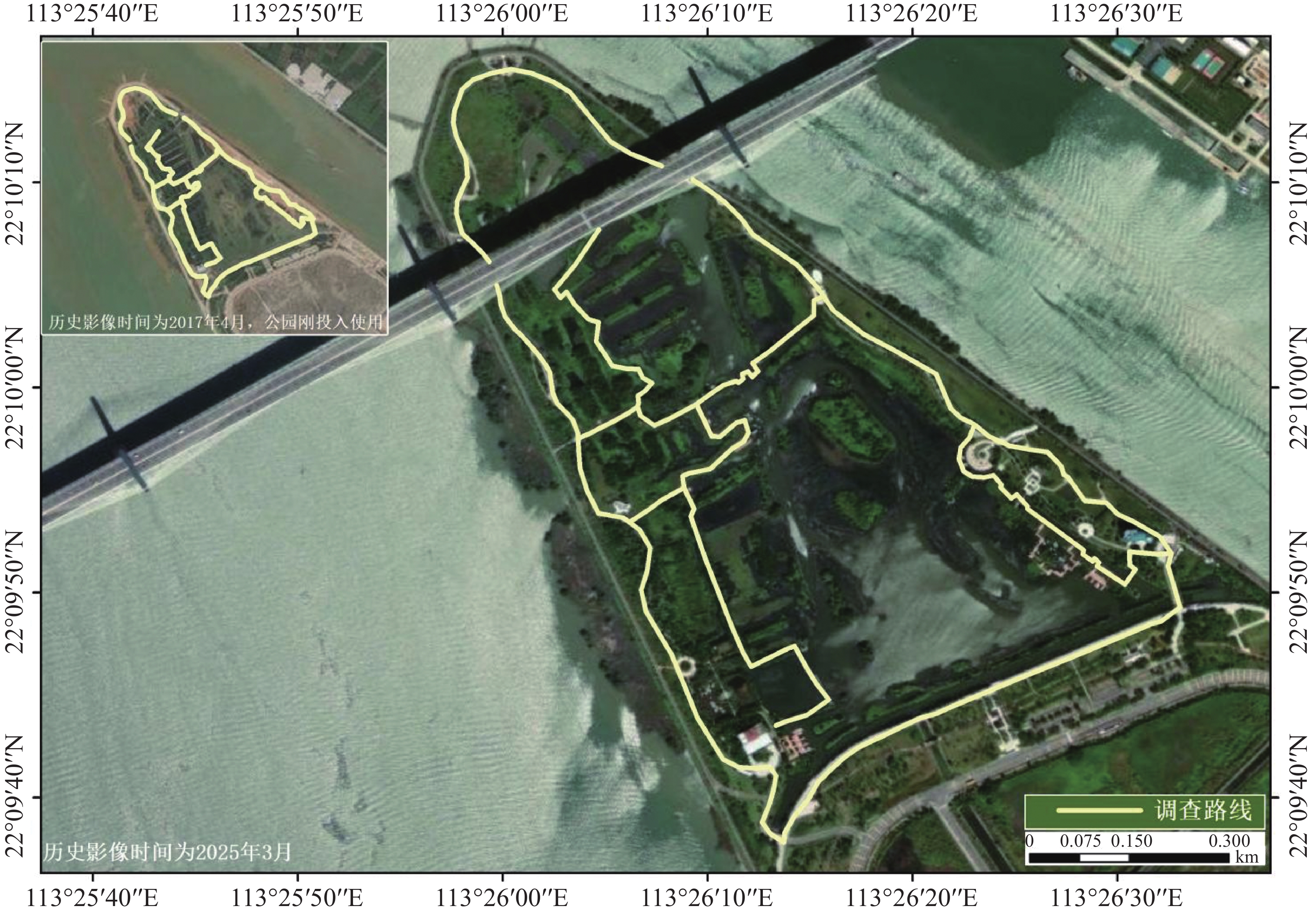 为评估横琴粤澳深度合作区芒洲湿地公园的维管植物现状,本研究通过野外调查与历史资料分析,系统研究了该区域维管植物的资源组成、区系特征及外来入侵物种分布。结果表明:1)湿地公园共记录有维管植物245种,隶属86科202属;其中,被子植物占95.51%(234种),蕨类和裸子植物分别占3.7%和0.8%;植物生活型以草本为主(47.3%),陆生植物占89.4%;2)植物区系具有显著的热带性,热带分布型的科和属分别占56.98%和83.17%,与珠三角其他湿地公园区系特征一致;3)发现43种外来入侵植物,其中,一级入侵种(如马缨丹Lantana camara、薇甘菊Mikania micrantha)占比达30.23%,表明湿地生态系统存在生态风险;4)记录到国家Ⅱ级保护植物3种(海南红豆Ormosia pinnata、海南龙血树Dracaena cambodiana等)及广东省重点保护植物1种。本研究确认了芒洲湿地公园自2017年建成以来的植物资源情况,且发现外来入侵植物存在一定的生态风险。建议采用基于自然的解决方案(NbS),加强本土植物利用、优化入侵物种监测体系,统筹生态修复与社区共治,以提升湿地生态系统稳定性及管理效能,本研究为粤港澳大湾区滨海湿地生态管理提供了重要数据支撑。