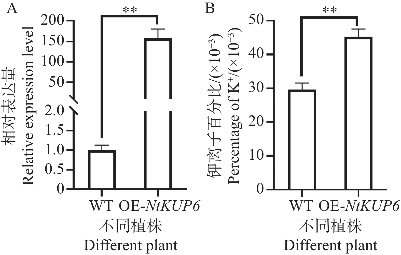 钾是影响烟草产量与品质的关键元素。为探究烟草钾转运蛋白基因NtKUP6的功能,本研究以烟草(中烟100)为材料,克隆获得编码区全长为