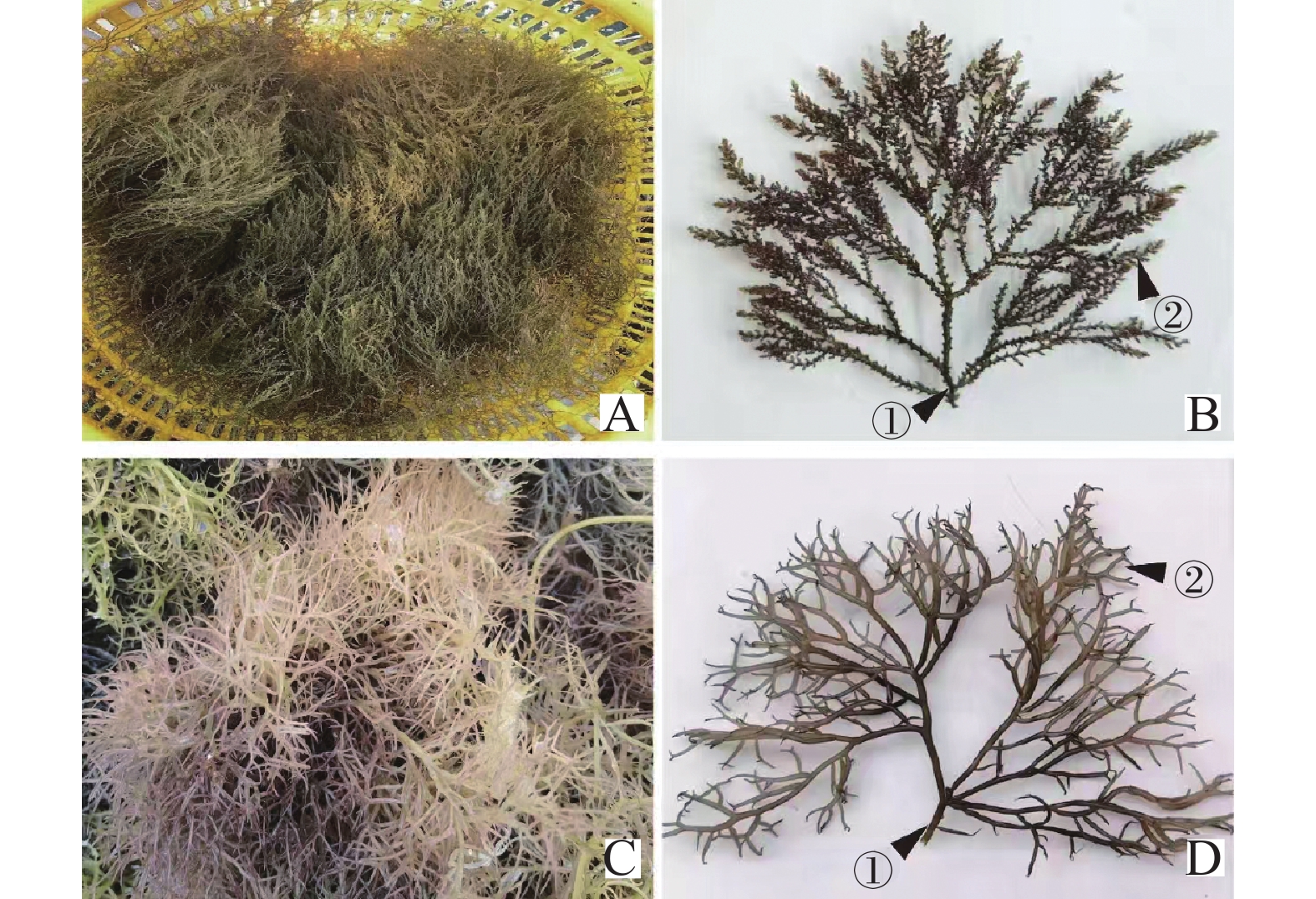 为探究藓状鱼栖苔(Acanthophora muscoides)和繖房江蓠(Gracilaria coronopifolia)两种大型红藻的潜在开发价值,测定其基本营养成分并进行分析与评价。结果表明,藓状鱼栖苔与繖房江蓠鲜质量(FW)水分含量分别为93.10%和88.60%,粗蛋白含量分别为9.4%和7.5%,粗脂肪含量分别为2.89%和1.78%,灰分含量分别为55.07%和27.38%,粗纤维含量分别为5.7%和3.57%;藓状鱼栖苔与繖房江蓠均有13种氨基酸,氨基酸的组成合理,必需氨基酸与呈味氨基酸含量丰富,DAA/TAA分别为56.74%与48.14%,符合FAO/WHO标准模式的要求,第一限制氨基酸均为亮氨酸,第二限制氨基酸分别为异亮氨酸与赖氨酸;藓状鱼栖苔与繖房江蓠均具有高水分、低脂肪、粗蛋白含量适宜、脂肪酸种类少、富含钙、铁、钠、镁、锌和钾等人体所需的元素、重金属元素含量极低的特点,且氨基酸种类多样、模式较为理想、营养丰富,具有较高营养价值和广阔的开发应用前景。本研究可为藓状鱼栖苔与繖房江蓠进一步的资源化开发与利用提供技术依据。