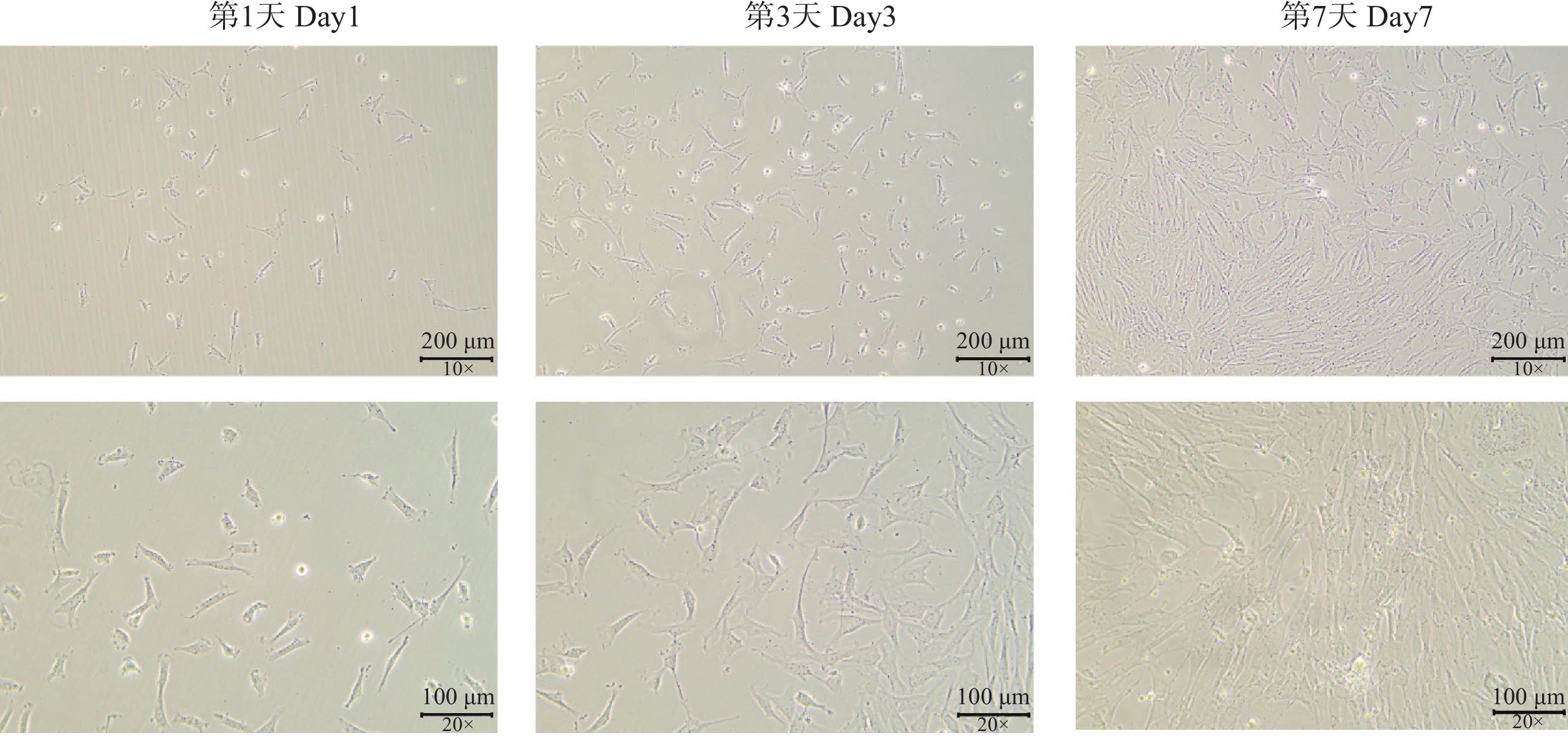心脏纤维化是导致患心脏病动物猝死的重要原因,心脏成纤维细胞是参与心脏纤维化主要细胞类型。本研究成功分离了猫原代心脏细胞,并实现在体外传代培养5代,经细胞形态学与分子生物学方法鉴定,符合心脏成纤维细胞特点。经TGFβ1诱导后,活化的成纤维细胞标志物α-SMA蛋白在刺激48 h后表达水平升高,说明TGFβ1刺激促进了猫原代心脏纤维细胞的活化。研究结果可为探究心脏纤维化发病机制提供依据,为心脏纤维化研究提供细胞学基础。
