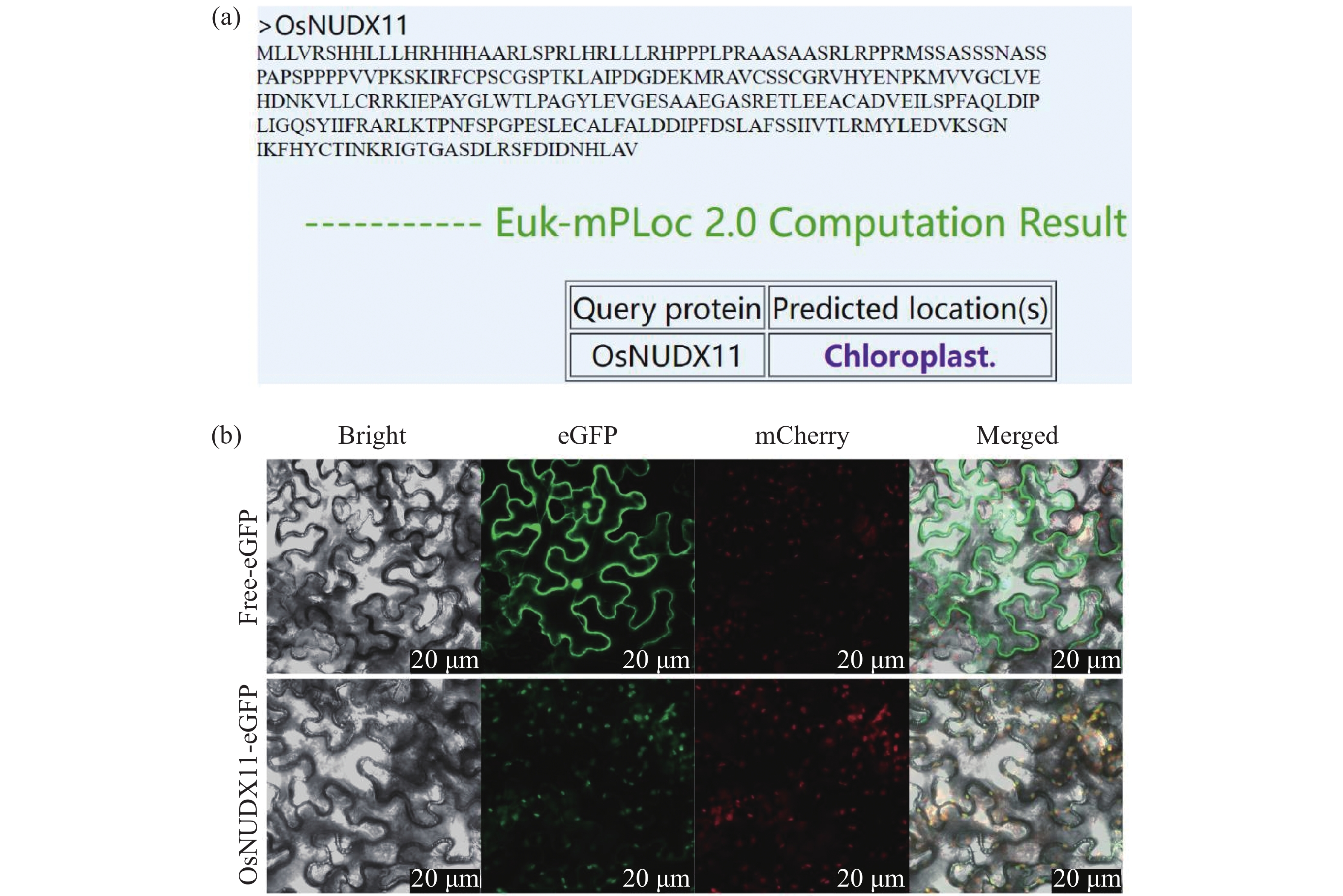 香稻因其品质优良、香味浓郁、清醇可口,长期颇受人们喜爱。香叶醇是一种散发玫瑰香味的高价值单萜化合物,具有广泛的医药生理活性和应用。然而,香稻中香叶醇含量较低,且香叶醇合成酶功能未被解析。为筛选和鉴定水稻香叶醇合成酶的候选基因,本研究以已报道的香叶醇合成酶萜烯合酶(TPS)家族和核苷二磷酸酶X(NUDIX)水解酶家族基因为靶标,对水稻进行同源序列比对分析和系统进化树分析,结合组织特异性表达谱,筛选到一个在水稻根和穗中高表达的NUDIX家族成员OsNUDX11,该基因与玫瑰和天竺葵中的香叶醇合成酶亲缘关系较为紧密。通过进一步的蛋白理化性质分析和烟草瞬时表达实验,证实了OsNUDX11与玫瑰和天竺葵中的香叶醇合成酶亚细胞定位一致。故推测OsNUDX11参与了香叶醇合成,为在水稻中大量合成香叶醇提供重要依据。