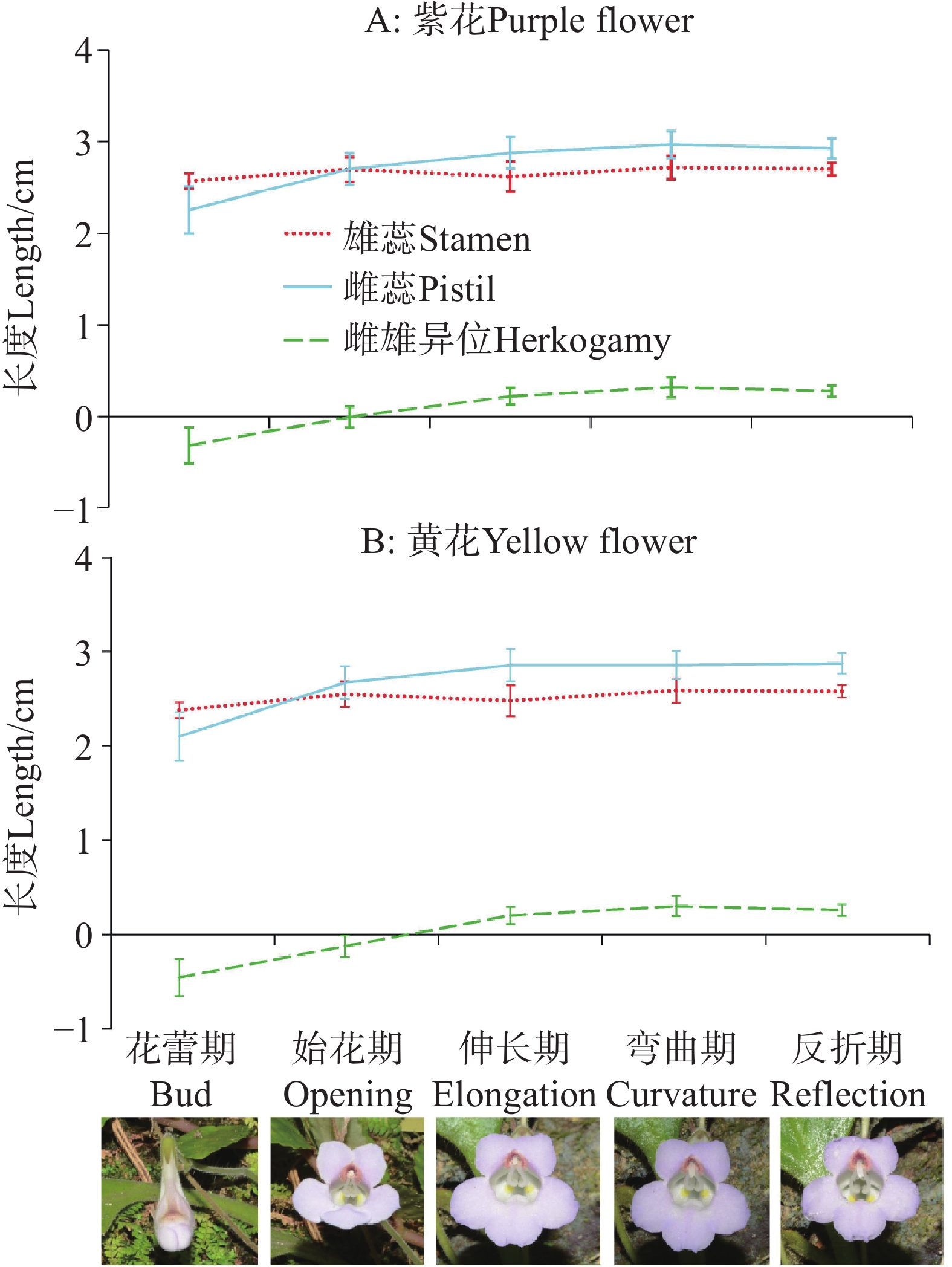 海南岛作为全球生物多样性热点地区之一,其生物多样性集中分布于海南热带雨林国家公园。烟叶报春苣苔(Primulina heterotricha)为海南岛特有植物,分布十分广泛,且具有黄花、紫花两种个体。首先,为明确不同地理种群花部特征的分化规律,通过测定不同地理种群的花大小、花喉宽度及花筒长等关键性状,分析地理隔离对花部性状分化的潜在驱动作用。其次,围绕两种花色分化及传粉机制差异,对比研究黄花和紫花个体的开花动态和访花昆虫及其访花行为,揭示不同花色种群可能存在的传粉机制差异。多元方差分析结果表明,不同地理种群间整体花部特征有显著差异(P<0.05),地理距离和海拔对其影响不显著;不同花色种群花部特征无显著差异(P>0.05)。在不同开花阶段,两种花色种群的雄蕊长度、雌蕊长度及雌雄异位程度均无显著差异(P>0.05),但随着花期柱头逐渐伸长并超过花药位置。访花昆虫观测显示,黄花种群的主要访花昆虫有黄黑无垫蜂与云南无垫蜂,紫花种群则为黄黑无垫蜂。因此,黄花个体具有更泛化的访花者,紫花个体传粉更加特化。本研究对烟叶报春苣苔不同地理种群花部特征的分化规律、花色多样性的传粉适应进行了研究,为海南热带雨林国家公园生物多样性保护、传粉服务功能评估提供了科学依据。