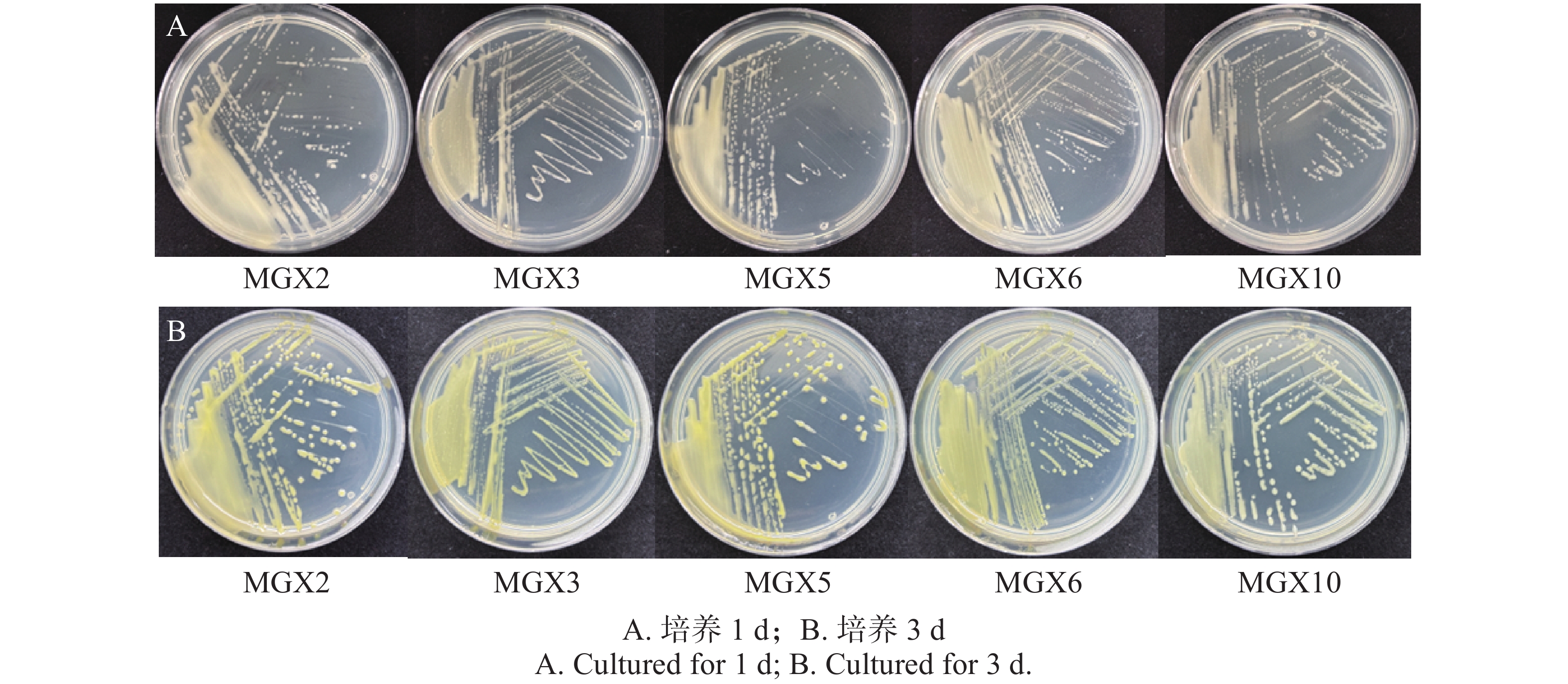 为了解生防链霉菌的抑菌活性,采用梯度稀释法,从海南不同地区的6个土壤样品中分离放线菌;通过对峙培养法对获得的放线菌菌株进行筛选;利用形态、生理生化特征和分子生物学方法对菌株进行鉴定;通过浸果法和盆栽试验测定活性菌株的潜在应用价值。本研究共分离获得放线菌株285株,经筛选菌株Q2-02抑菌活性最高,其对芒果蒂腐病菌(Botryodiplodia theobromae)、芒果炭疽病菌(Colletotrichum gloeosporioides)和水稻纹枯病菌(Rhizoctonia solani)的抑制率分别为92.8%、90.0%和88.2%,对其他6种病原的抑制率也超过60.0%;经鉴定发现,Q2-02为卢娜林瑞链霉菌(Streptomyces lunalinharesii);盆栽实验表明,菌株发酵上清10倍稀释液对芒果蒂腐病及水稻纹枯病的防效均显著高于阳性对照45 %噻菌灵悬浮剂800倍液和10%井冈霉素水剂1 000倍液,表明菌株Q2-02具有进一步开发应用的价值。