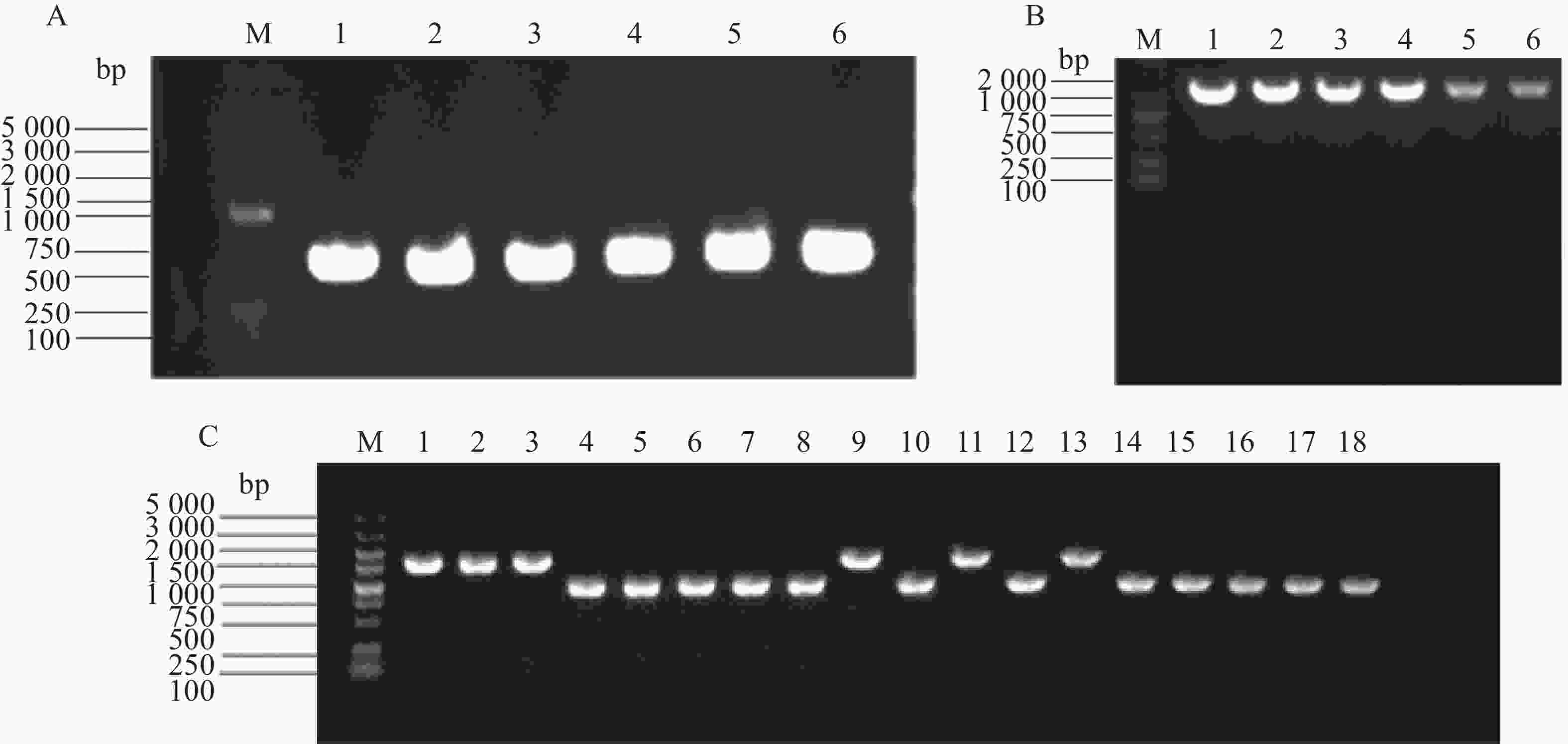 • DNA提取试剂盒购自天根生化科技北京有限公司,DNA凝胶回收试剂盒、质粒提取试剂盒购自OMEGA生物技术公司,限制性内切酶、DNA 聚合酶和 T4 连接酶与PCR相关试剂均由 TaKaRa 公司提供,引物合成与测序分别由上海生工生物工程股份有限公司与华大基因科技股份有限公司完成。实验所用其他试剂均为常规试剂。