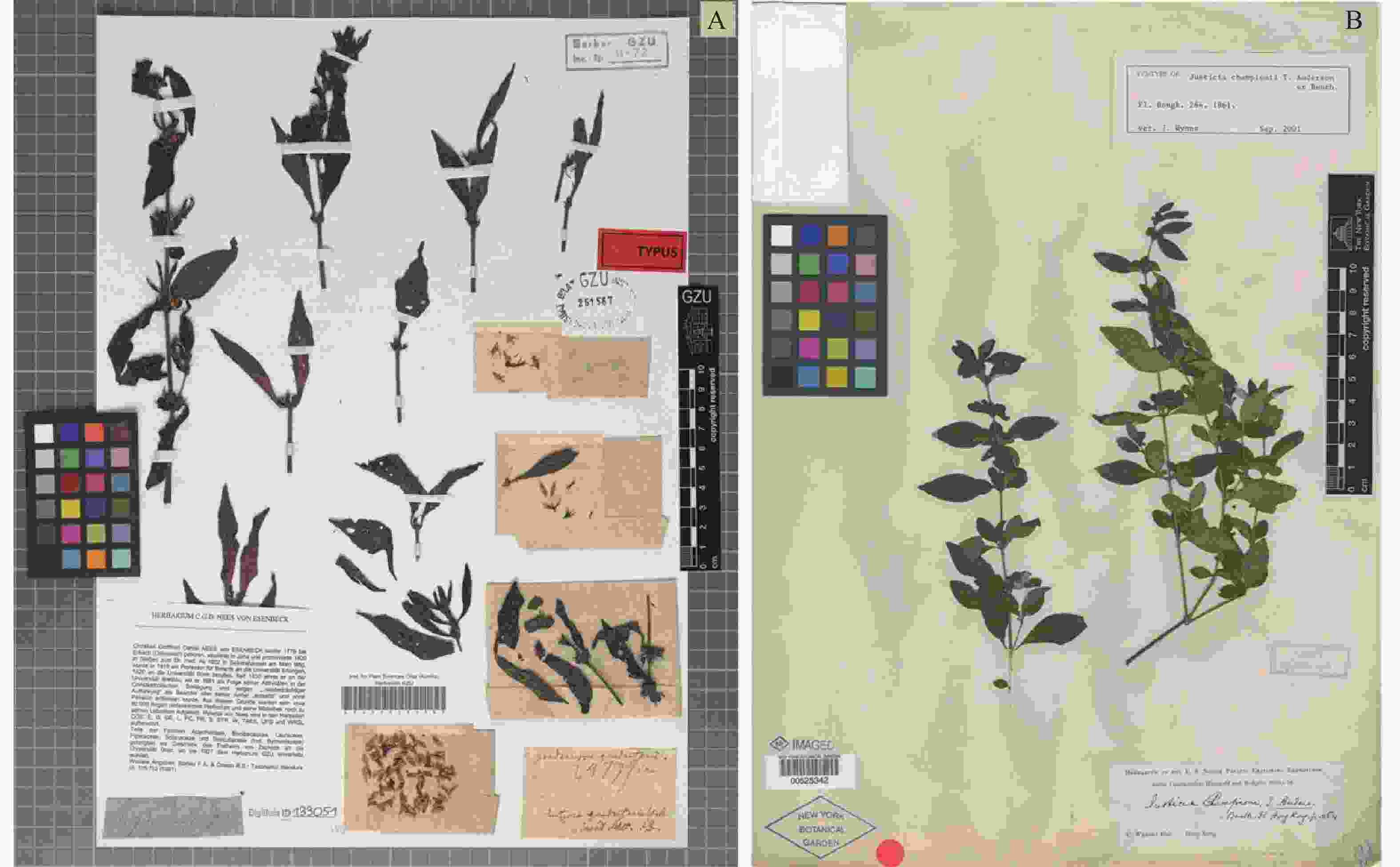 Fig.  3  Type specimen photograph of Justicia quadrifaria and J. championii