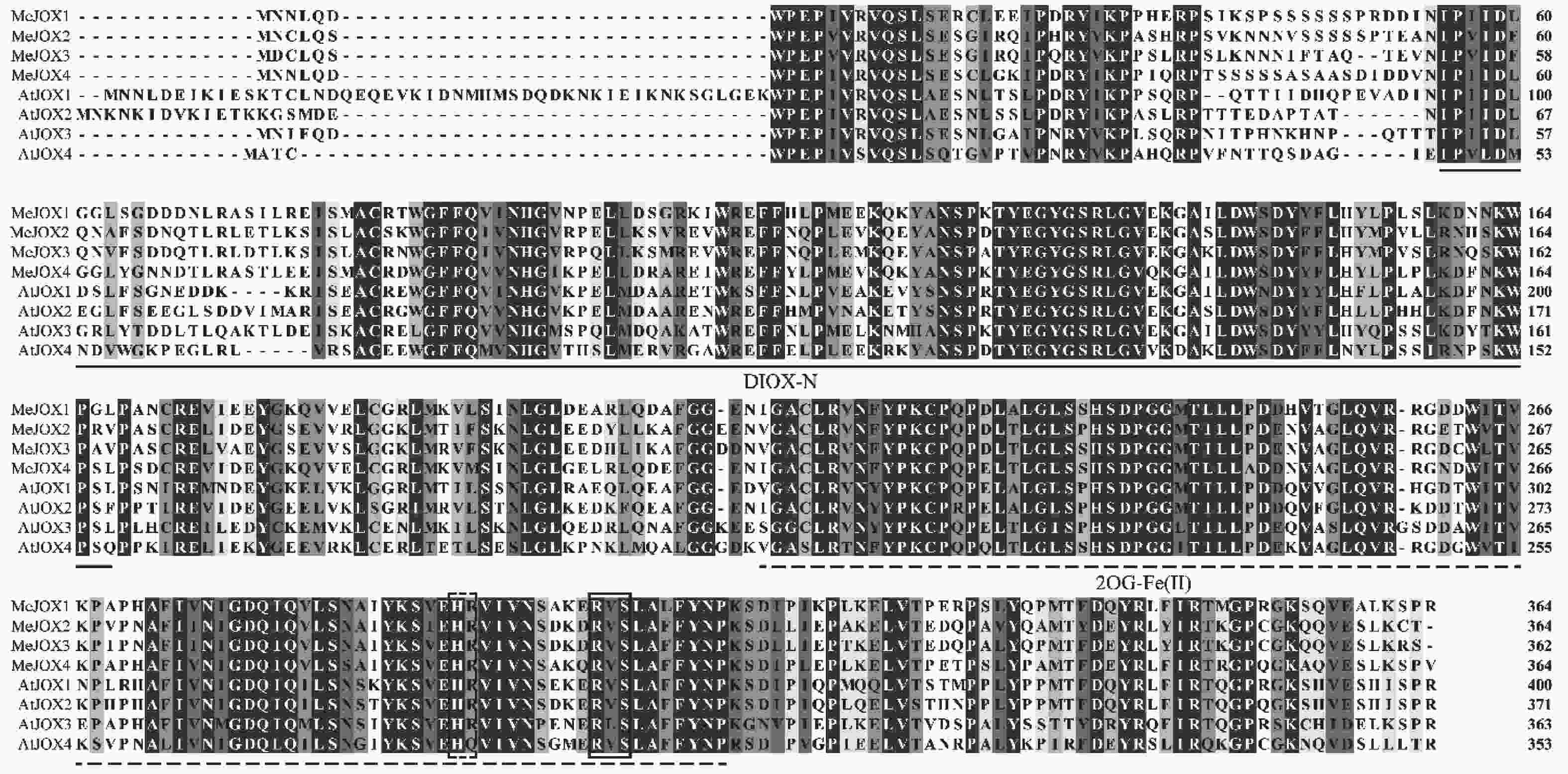 Figure 2.  Multiple sequence alignment of JOX proteins in cassava and Arabidopsis