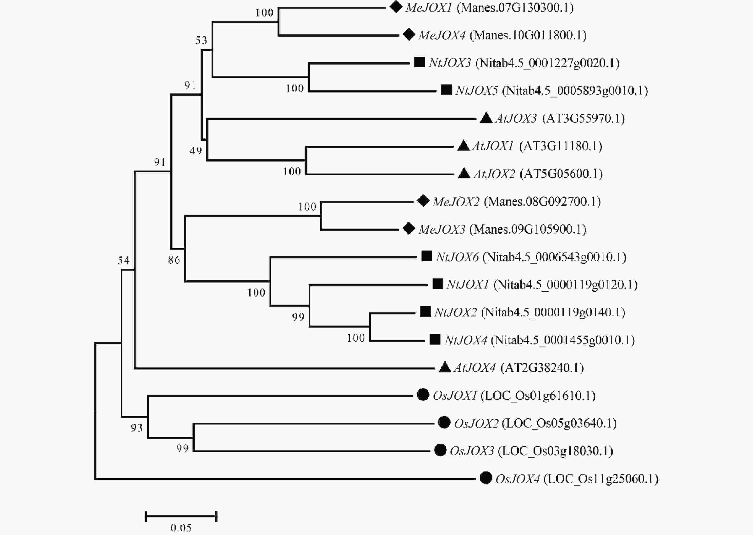 Figure 3.  Phylogenetic tree of JOX genes in cassava, Arabidopsis, rice, and tobacco