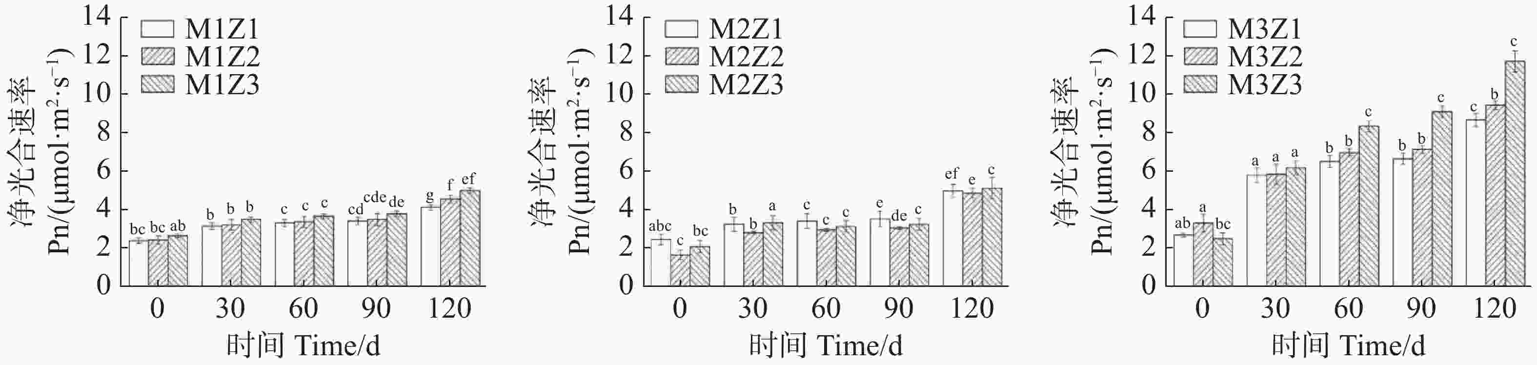 M3Z1 39.83±2.24de 55.53±2.62c 38.60±3.02e 41.87±3.06d 49.50±7.47c