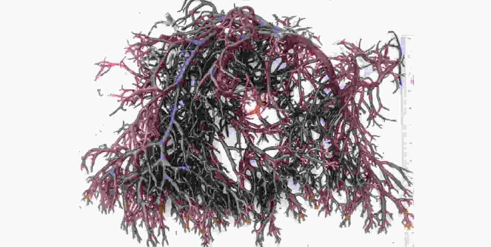本试验所用的长心卡帕藻材料为2024年5月采集于海南省陵水黎族自治县黎安潟湖,运至海南省海洋与渔业科学院琼海科研基地,在配套循环水设施的方形水泥池中暂养7 d,水泥池规格为10 m×1 m×1.5 m,日循环水量70%以上。暂养期间水温为27~29 ℃,盐度33,自然光照。挑选生长状态良好、藻体表面无损伤的健壮褐色藻株(图1)作为试验材料,冲洗、去除表面附着生物。