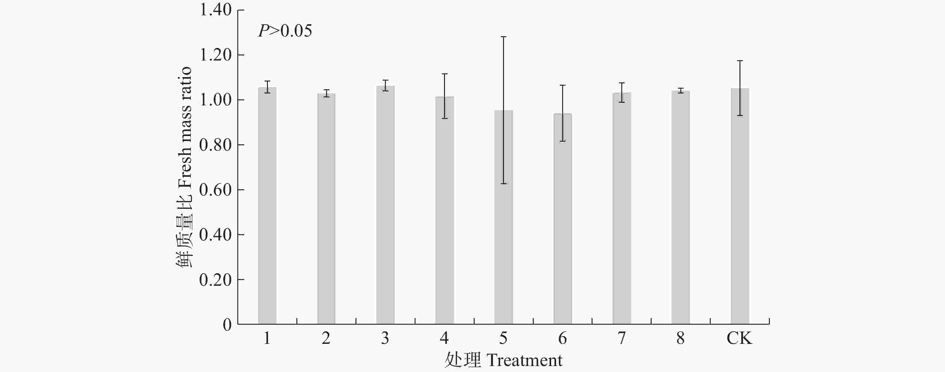 图 1 保鲜剂对盛花期紫玉兰花朵瓶插14 h时鲜质量比的影响