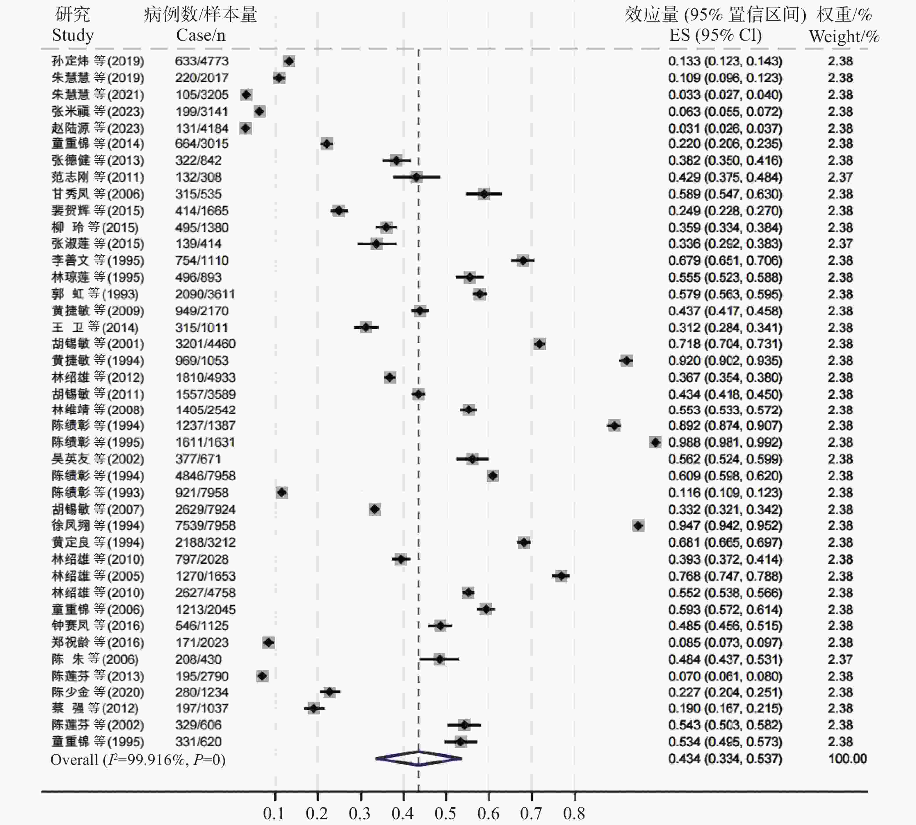 图 1 海南省肠道寄生虫感染率的Meta分析森林图