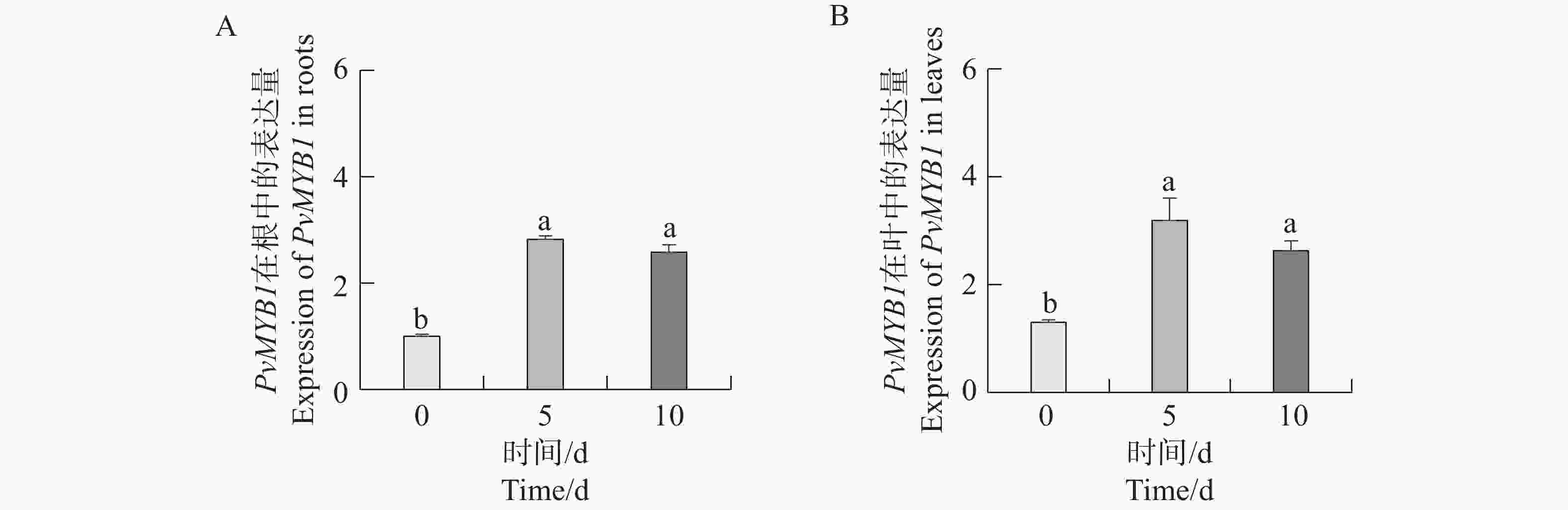 Figure 8.  Expression analysis of PvMYB1 at different time treatment in 30 g·L−1 NaC