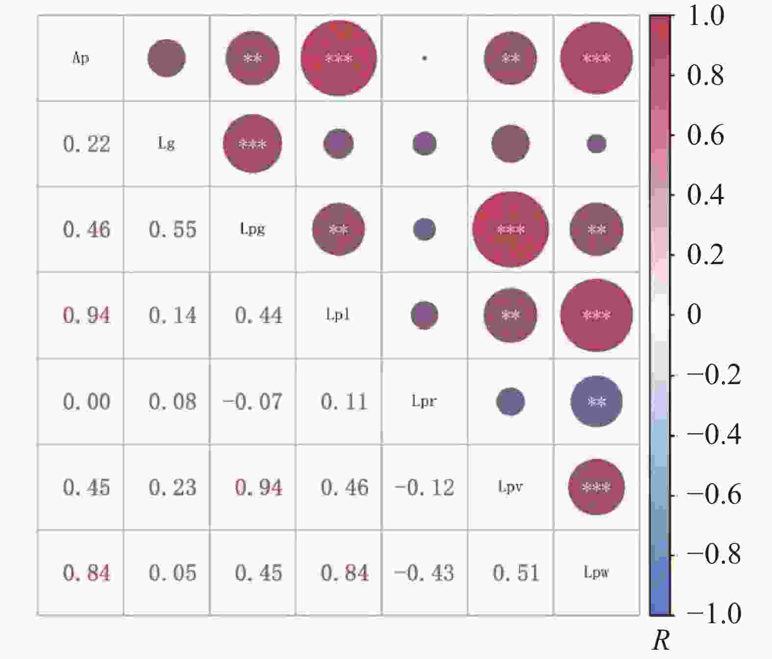 Comp.2Lpl/μm 0.89 −0.02 Lpw/μm 0.84 −0.49 Lpr/μm −0.24 0.83 Lpv/μm 0.83 0.15 Ap/μm 0.89 −0.13 Lg/μm 0.40 0.76 Lpg/(ind·μm−2) 0.84 0.38 特征值