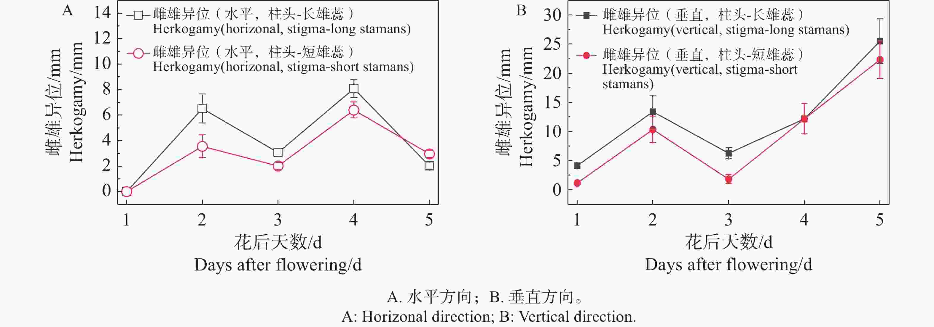 Fig.  4  Changes in herkogamy at different flowering stages