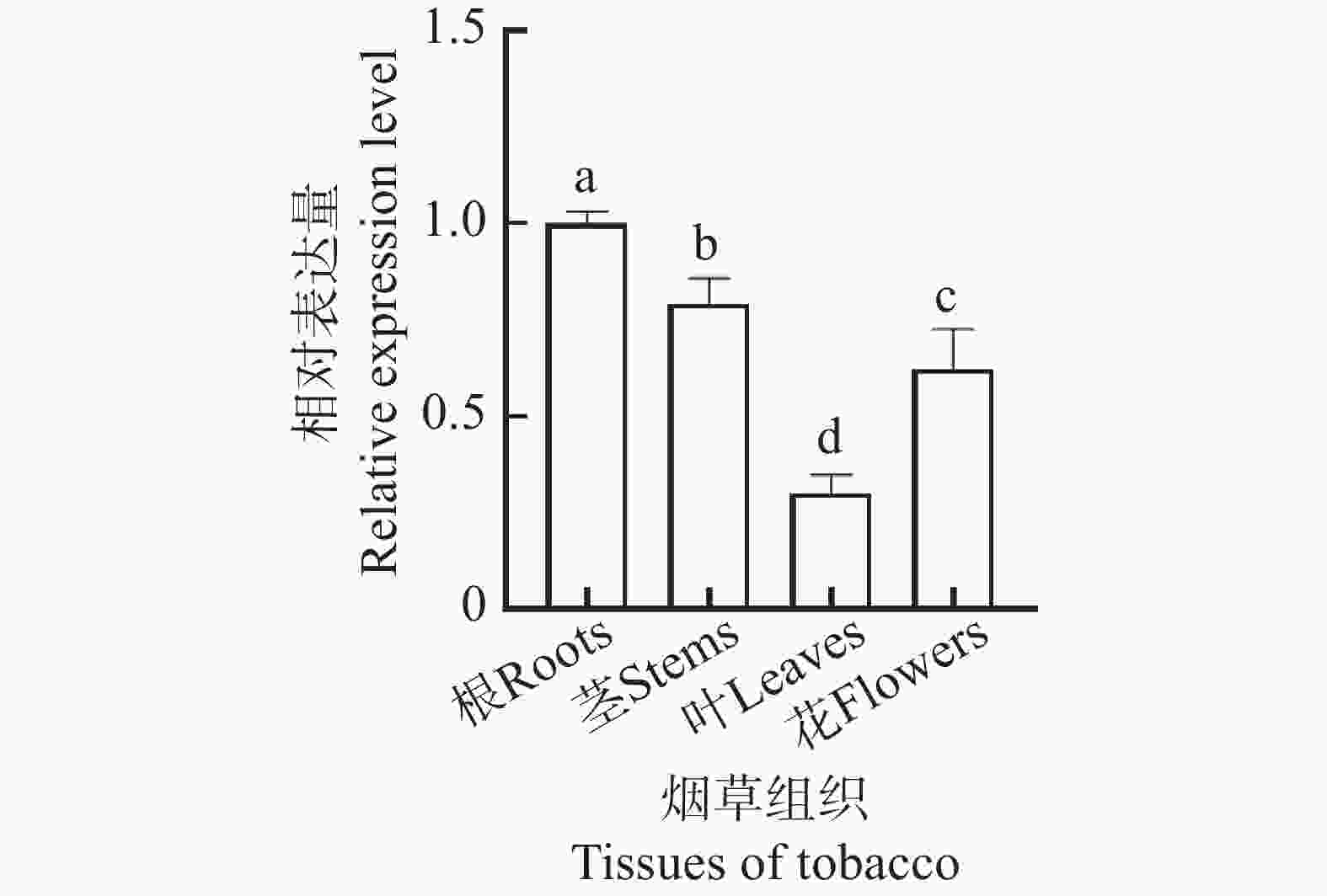 • 以豫中烟区主栽品种中烟100(Nicotiana tabacum L.)为研究对象。植株于2024年种植在国家烟草基因研究中心的人工气候室,采集旺长期烟株的根、茎、叶和盛花期烟株的花等组织器官,经液氮速冻后,−80℃冰箱保存备用。每个组织至少3个生物学重复。亚细胞定位、瞬时沉默及过表达实验的材料均为本氏烟草。培养条件:温度(26±1)℃,相对湿度60%,16 h光照培养,8 h黑暗培养。