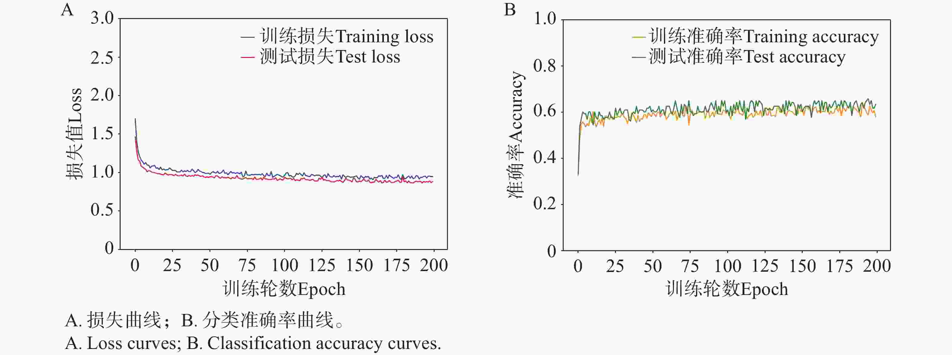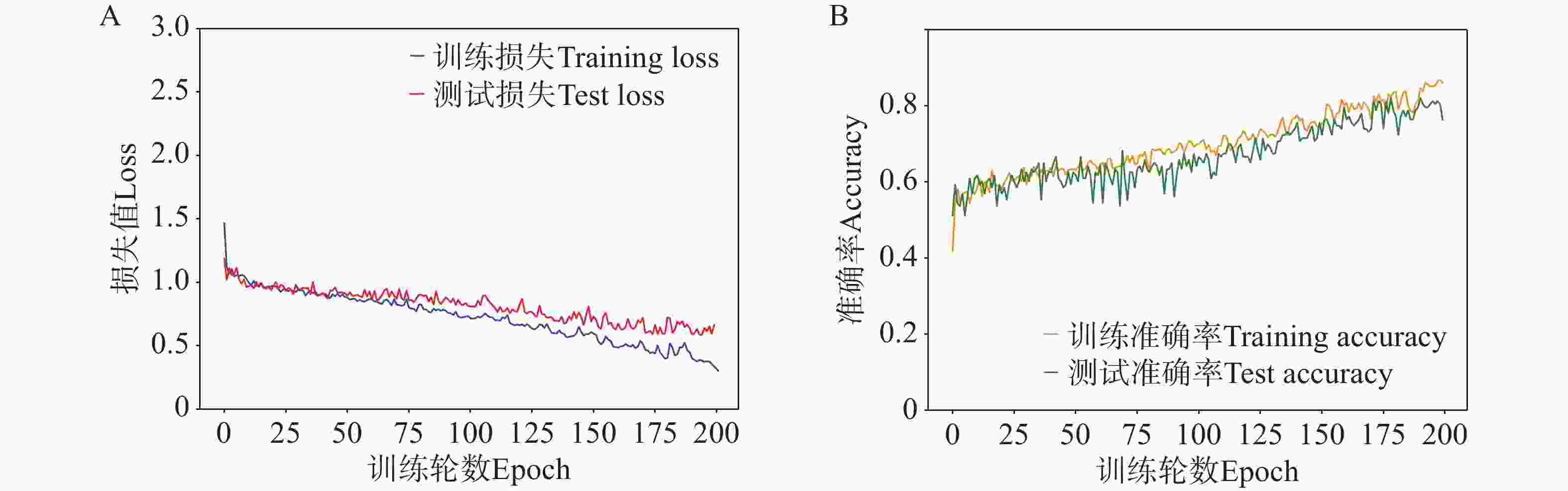 图 5 CNN模型在苦瓜果皮颜色分类任务中的训练与测试过程