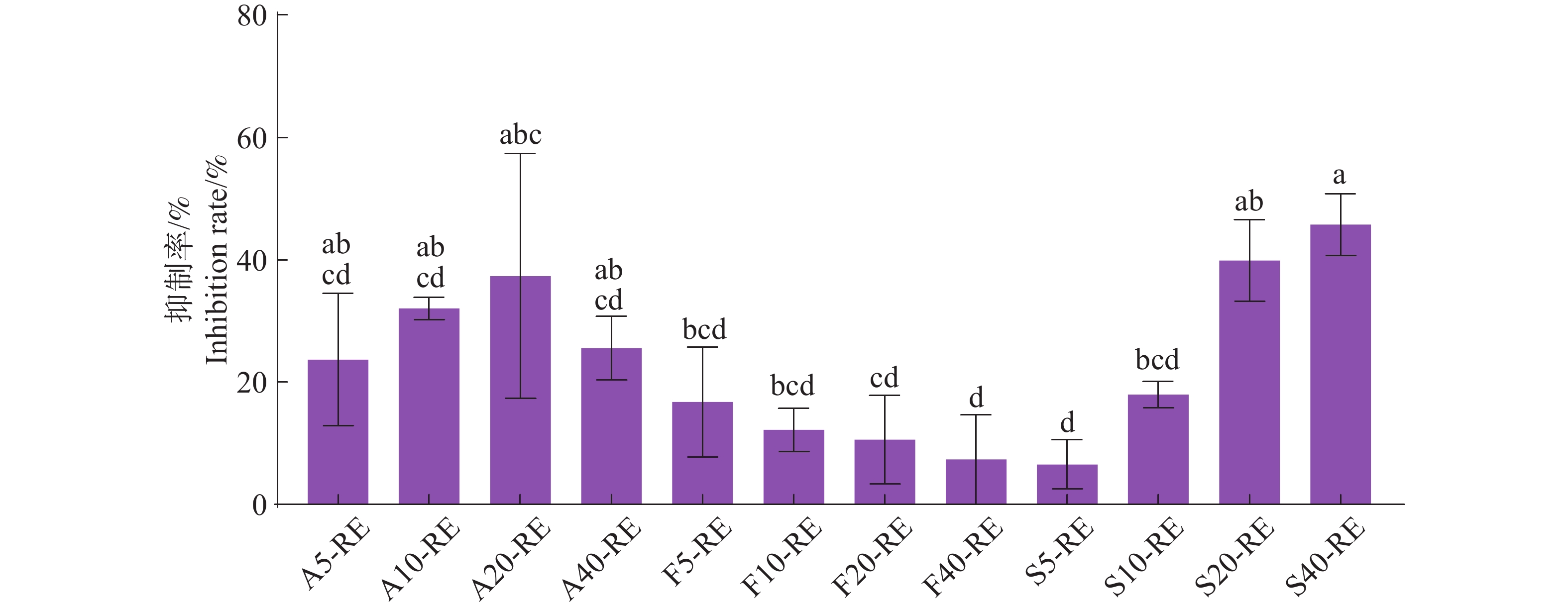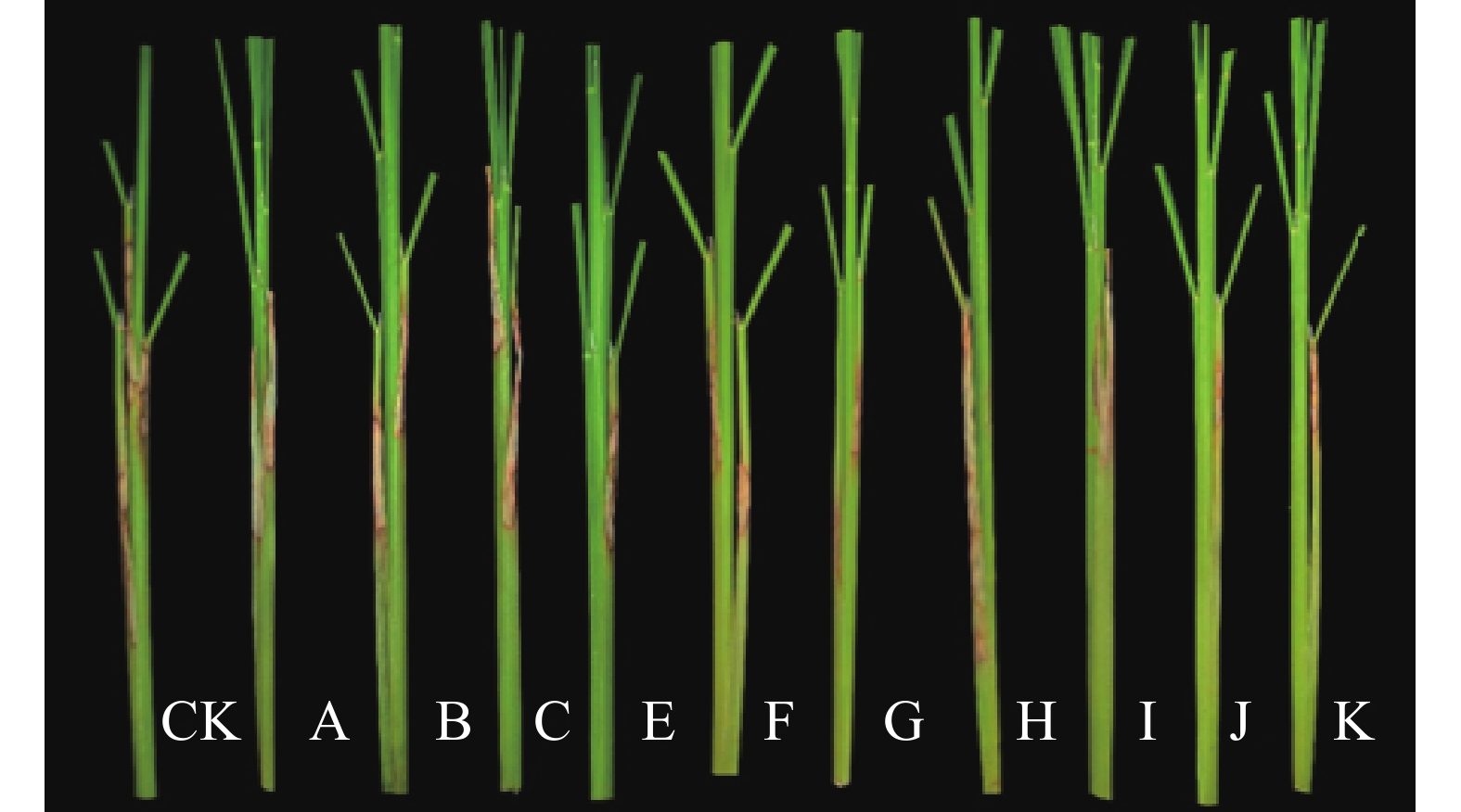 An attempt was made to make full use of the advantages of plant extracts and chemical pesticides to reduce the dosage of chemical pesticides. Syzygium infrarubiginosum was extracted with methanol, and mixed with four chemical fungicides, including ethirimol, pyraclostrobin, thifluzamide and difenoconazole to screen the synergistic ratio of their mixtures against Rhizoctonia solani, the pathogen of rice sheath blight by indoor activity determination of mycelial growth rate of R. solani. The control effects of the synergistic mixtures on rice sheath blight and cowpea powdery mildew were determined by indoor pot experiment. The indoor activity determination showed that the mixtures at 11 ratios were found to have significant synergistic effects in the indoor activity determination of rice sheath blight, including the mixture of 5% (w/w) methanol extract microemulsion with 5% (w/w) pyraclostrobin suspension at the ratios of 4∶1 and 5∶1 ratio (the synergistic coefficient was 2.349 and 2.987, respectively), with 5% thifluzamide suspension at the respective ratios of 1∶3, 1∶4 and 1∶5 (the synergistic coefficient values were 2.714, 2.455 and 2.167, respectively). The pot experiment showed that the mixtures screened could effectively control the occurrence of rice sheath blight and cowpea powdery mildew.