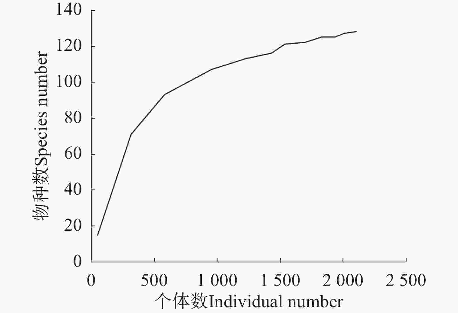从图1可知,总体调查曲线随着个体数的不断积累,呈先急剧增加,后逐渐平缓趋于水平,表明调查抽样强度充分。