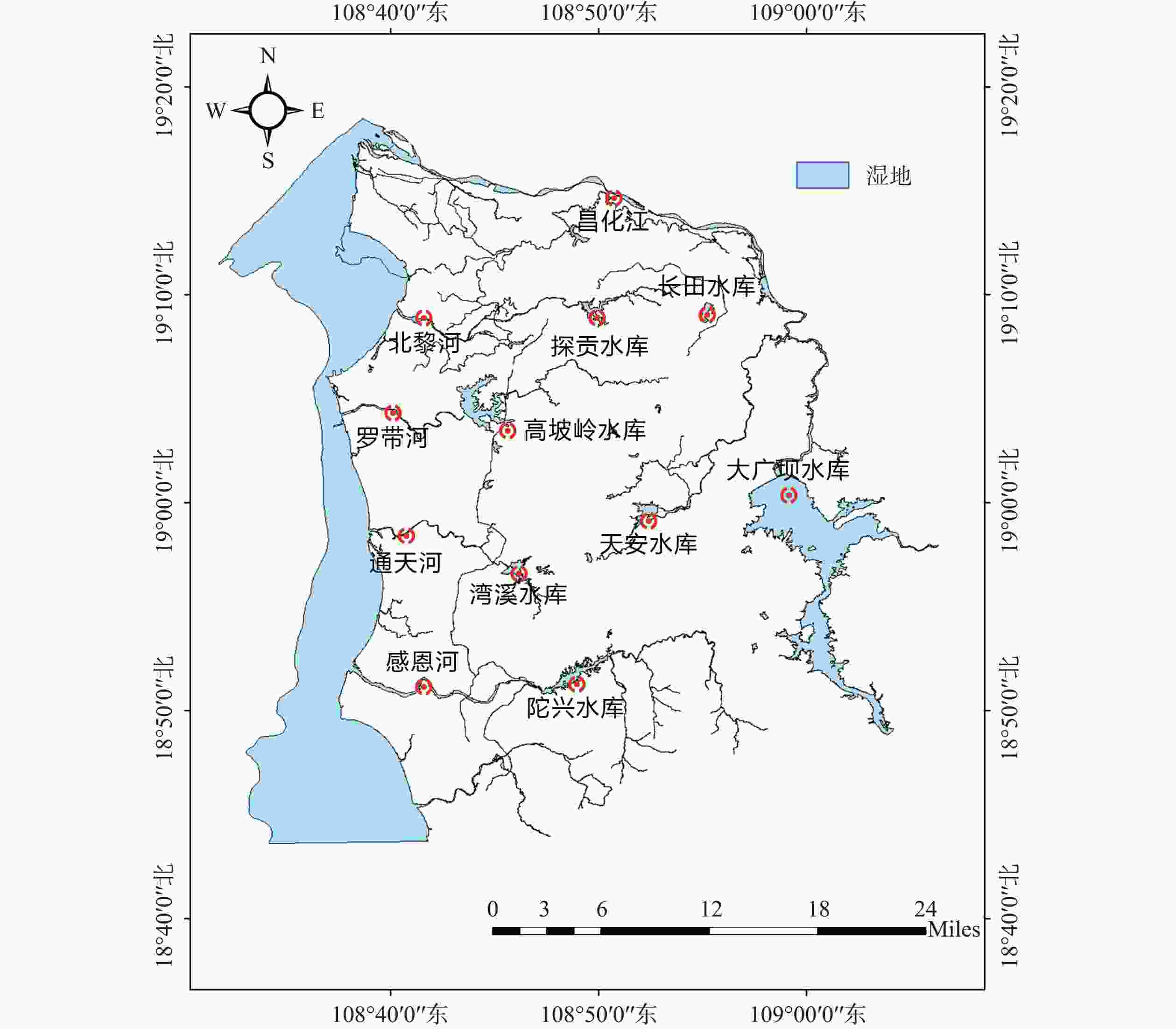 东方市位于中国海南西南部,地理坐标为18°43′08″—19°18′43″N,108°36′46″—109°07′19″E(图1)。年降水量低于蒸发量,属热带干旱地区。全市湿地面积达5.95 hm2,包括近海与海岸湿地、湖泊湿地、河流湿地及人工湿地等,是海南湿地面积最大的城市[9]。