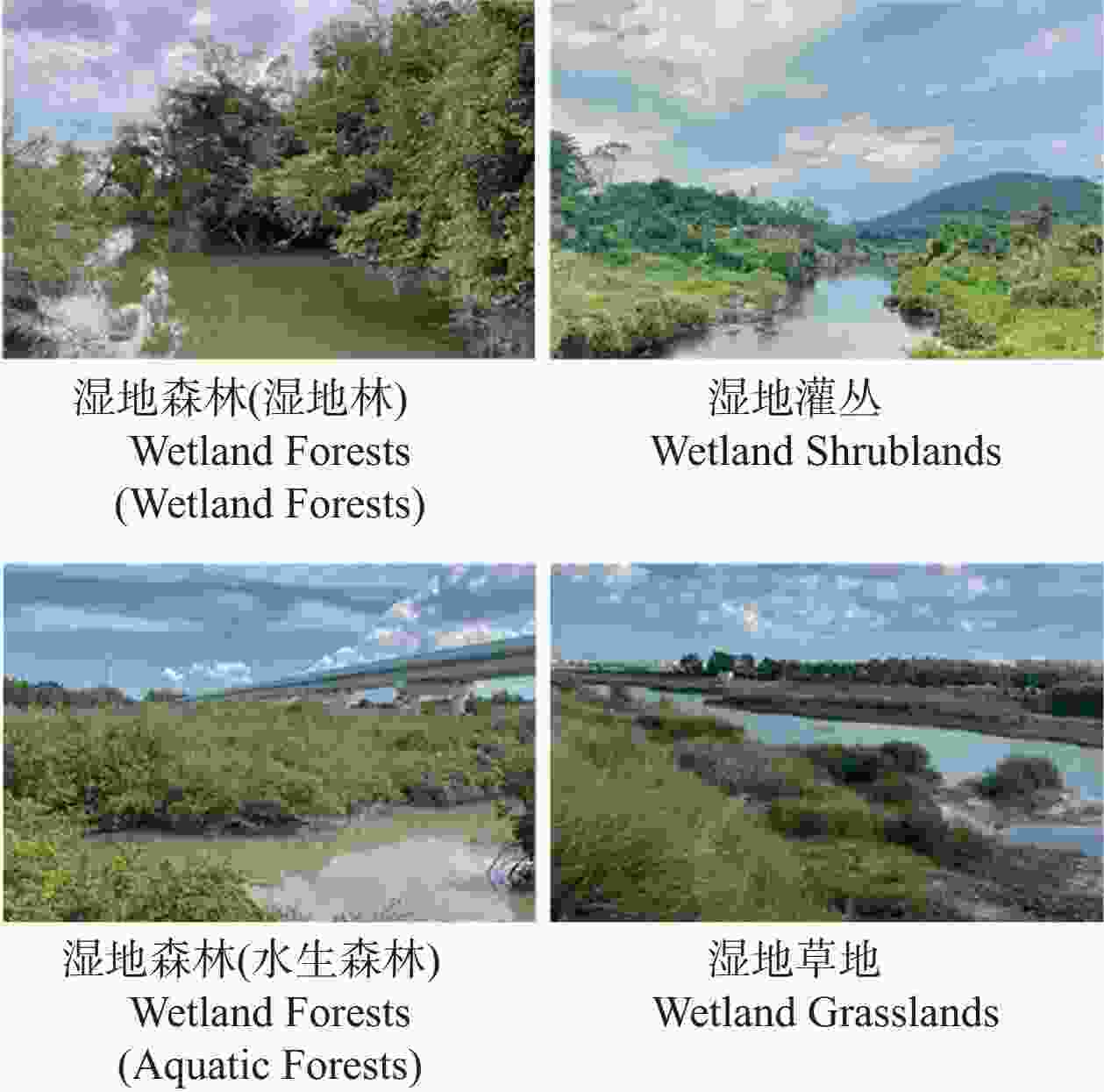 Wet Grasslands(6)飞机草+鬼针草+白茅群系(Chromolaena odorata+Bidens pilosa+Imperata cylindrica spp.) (7)象草+芦竹+五节芒+斑茅群系(Pennisetum purpureum+Arundo donax+Miscanthus floridulus+Saccharum arundinaceum spp.) (8)白饭树+甜根子草+含羞草决明群系(Flueggea virosa+Saccharum spontaneum+Chamaecrista mimosoides spp.) 6浅水草地