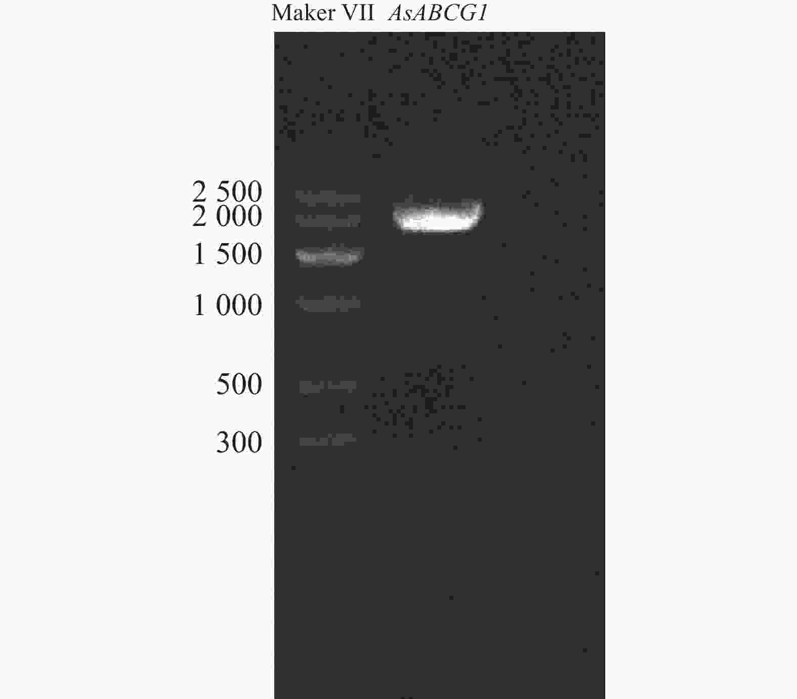 根据白木香转录组中的序列设计 AsABCG1 基因的特异性引物并进行PCR扩增,经琼脂糖凝胶电泳检测显示获得一条清晰的条带(图3)。测序结果表明,该基因的 CDS序列全长为1986 bp,编码一个包含661个氨基酸的蛋白质。