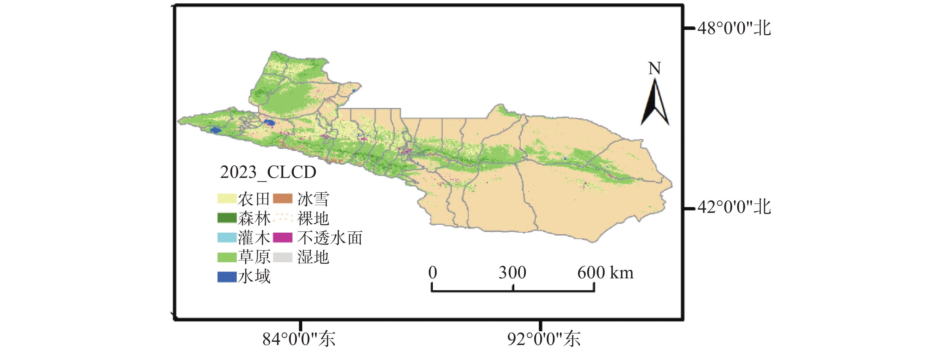 天山北坡位于40°50′—47°60′N和79°42′— 96°36′E之间。西起伊犁河谷,东至准噶尔盆地边缘,主要包括新疆维吾尔自治区的伊犁哈萨克自治州、昌吉回族自治州和乌鲁木齐市等地区(图1)。该区域地势西高东低,自西向东依次由高山草甸、山地草原、典型草原过渡至荒漠草原与戈壁地貌,呈现明显的垂直带谱特征。天山山脉作为中亚重要的生态安全屏障,不仅是干旱区主要的水源涵养地和碳汇中心[15-16],也是新疆畜牧业生产的核心牧区。为避免将依法禁止或严格限制放牧的区域误纳入模拟,本研究团队对研究区内自然保护区范围进行了处理。包括塔城巴尔鲁克山自然保护区、新疆艾比湖湿地自然保护区、新疆西天山自然保护区、天池博格达峰自然保护区,以及新疆罗布泊野骆驼国家级自然保护区在研究区内的覆盖部分,不纳入载畜阈值与退化年限的模拟计算范围。