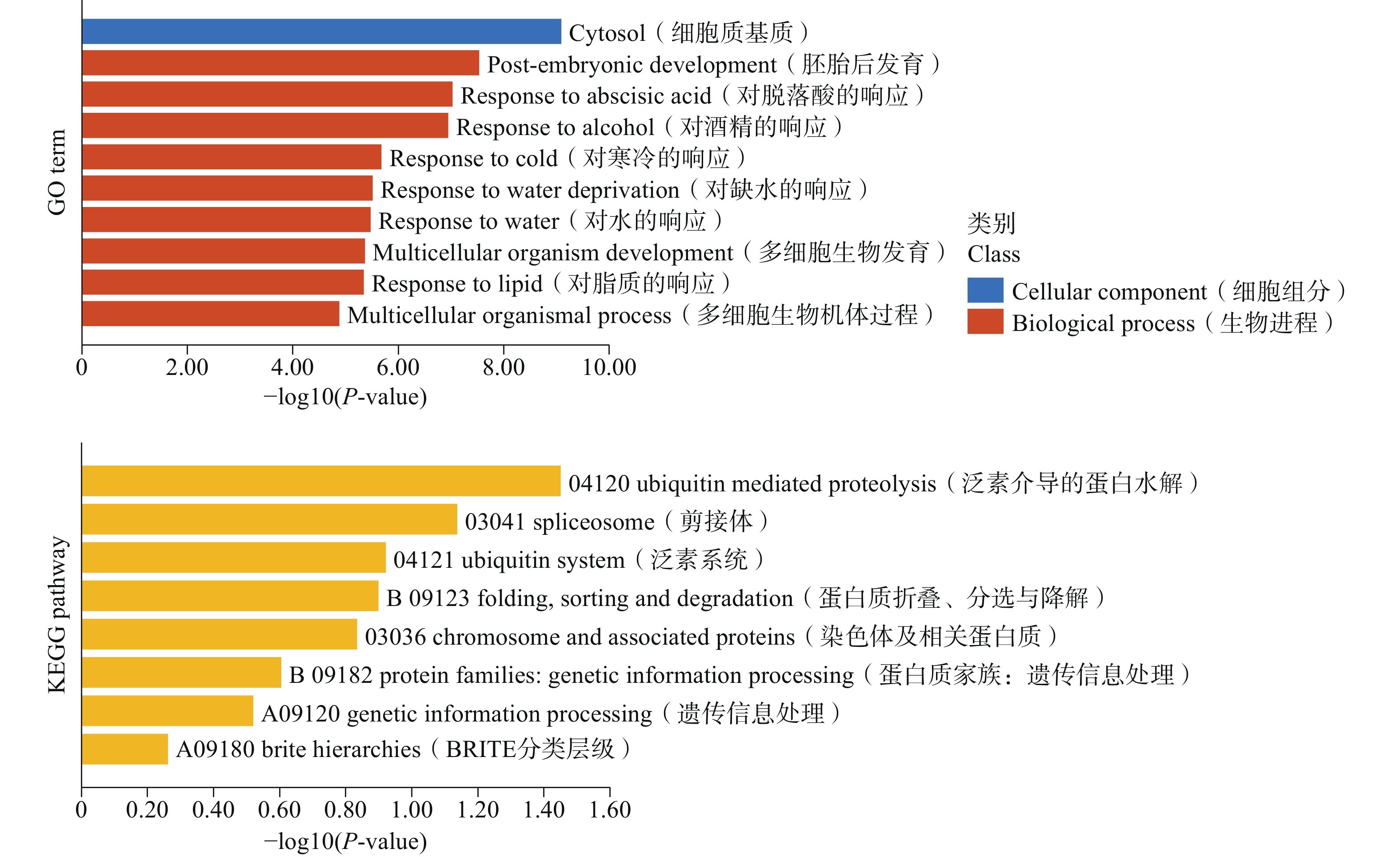 Figure 6.  Bar graphs of GO (top)and KEGG (bottom)enrichment analysis for the durian LEA gene family.