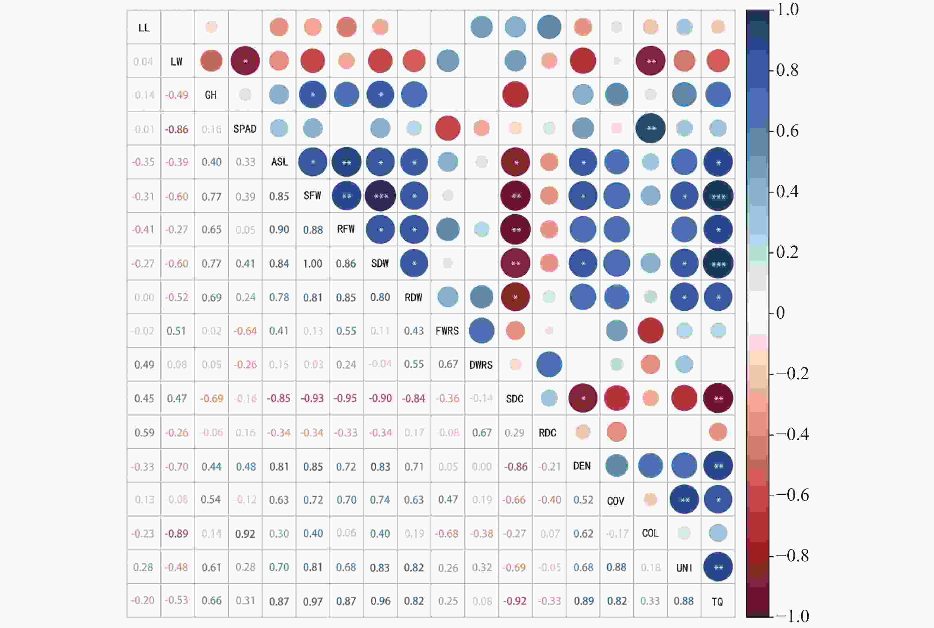 相关指标的筛选与确定,参考罗耀[12]等、张凯[20]和Wherley[22]等的研究成果,同时结合本研究的地毯草种质耐逆性筛选目标与实际数据可获取性,经综合考量最终选取18项测量指标。具体测定方法如下: