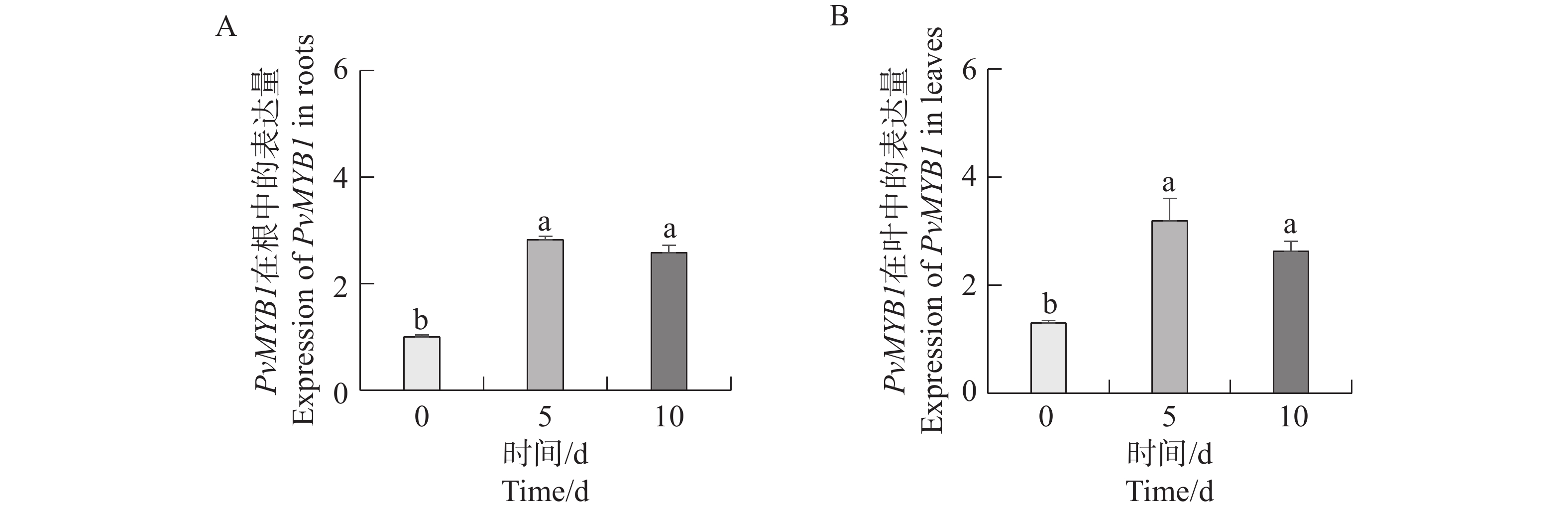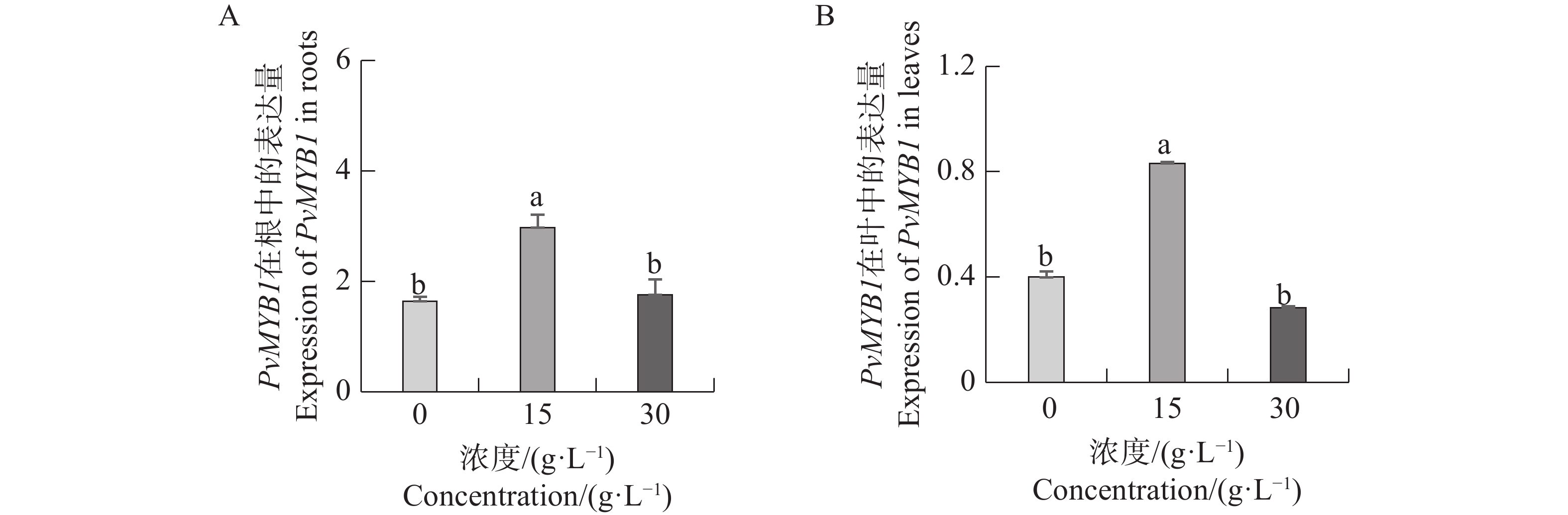 Seashore paspalum (Paspalum vaginatum Sw.) were treated with different concentrations of salt to observe the effect of salt treatment on the growth of seashore paspalum, and the PvMYB1 gene was cloned from seashore paspalum under different treatments and analyzed by using bioinformatics and gene expression analysis methods in a view to investigating whether MYB transcription factor genes are involved in the regulation of growth and development of seashore paspalum under salt stress. The results showed that salt stress inhibited the growth of both shoots and roots in seashore paspalum, manifested by reduction in total root length, root surface area, and root volume. The full length of the seashore paspalum PvMYB1 gene was1098 bp, encoding 365 amino acid residues, with a protein molecular weight of 39.26 kDa, and.this gene belongs to the R2R3-MYB family. Subcellular localization prediction indicated that the PvMYB1 protein was located in the nucleus. RT-qPCR analysis demonstrated that the expression of PvMYB1 was higher in leaves than in roots. The results of salt treatment at different time periods showed that 30 g·L-1 salt treatment significantly increased the transcription level of the PvMYB1 gene. Moreover, under different salt concentration treatments, the expression levels of the PvMYB1 gene in the roots and leaves were significantly upregulated when the salt concentration was 15 g·L-1. All these results revealed that PvMYB1 is implicated in the response of seashore paspalum to salt stress.