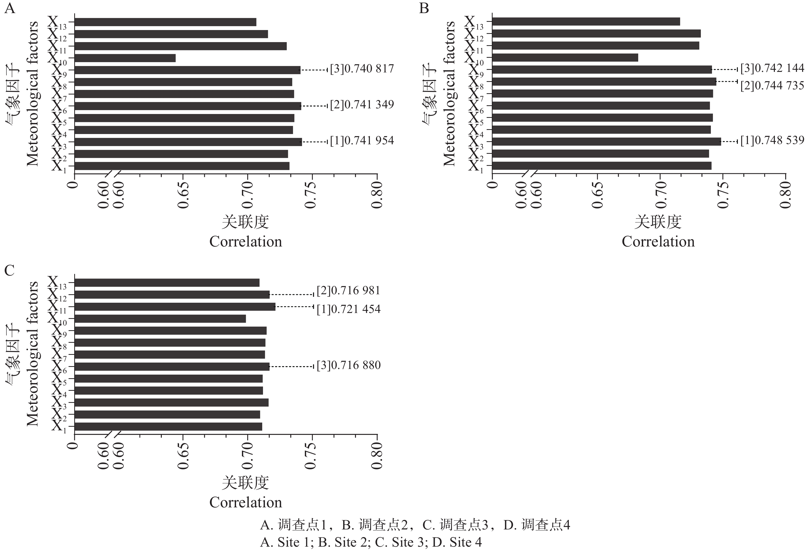 To clarify the species composition of major pests in pepper fields in Sanya, Hainan, and the relationship between thrips population dynamics and meteorological factors, a systematic survey of pest species and thrips population dynamics was conducted during the pepper growing season from November 2024 to May 2025, and their association with key meteorological factors was analyzed. The results showed that the dominant pests in Sanya pepper fields were thrips, with Thrips palmi and Frankliniella intonsa being the dominant species. Thrips pests occurred at all the growth stages of pepper, but their population dynamics exhibited distinct growth stage-specific differences: the seedling stage was a low-incidence period, and the flowering and fruit-setting stages were the peak population period, during which the number of F. intonsa significantly exceeded that of T. palmi. The damage decreased during the flowering and harvesting stages, and by the end of the survey, T. palmi once again became dominant. Correlation analysis indicated that meteorological factors during the flowering and fruit-setting stages had a significant influence on thrips population numbers, showing significant positive correlations with average temperature, minimum temperature, average surface temperature, daily maximum/minimum surface temperature, and maximum humidity. All these findings reveal the pest species composition, dominant pest populations, dynamics of dominant thrips pests, and the key influence of meteorological factors on thrips population dynamics in pepper fields, providing a scientific basis for the precise monitoring and formulation of control strategies against thrips pests in pepper fields in the Sanya region.