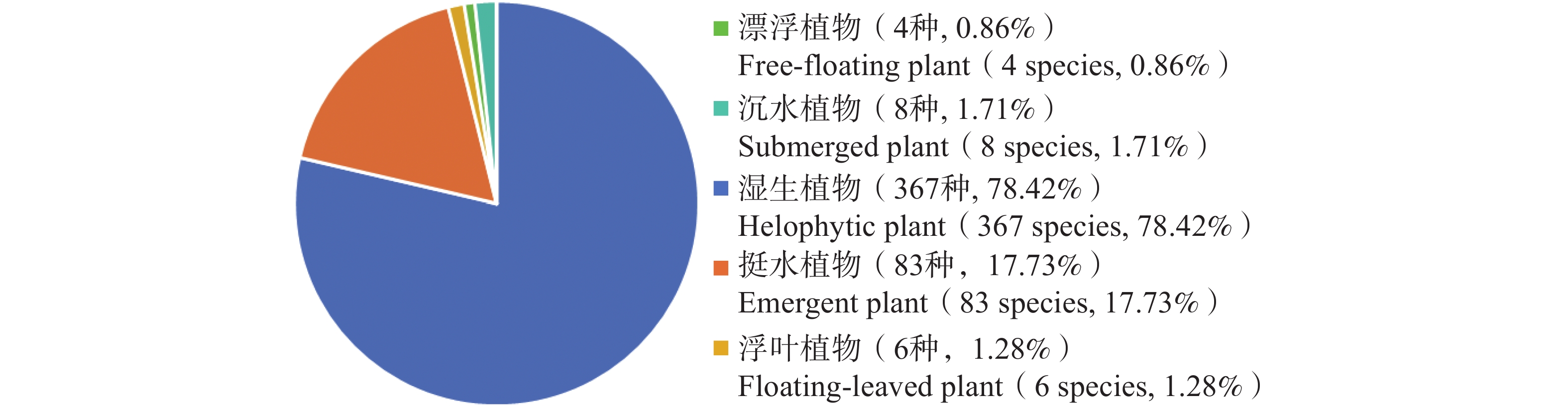 To understand the resource status of aquatic plants in Hainan Tropical Rainforest National Park, the species composition and floristic characteristics of aquatic plants in the park were analyzed based on field surveys and literature review. The results show that a total of 468 species of aquatic plants belonging to 255 genera and 95 families were recorded, among which angiosperms were absolutely dominant with 432 species. Both family- and genus-level species richness showed a "core–periphery" distribution pattern, i.e., species were highly concentrated in a few dominant families and genera. In terms of growth form, herbaceous plants predominated; regarding life form, perennials were the majority; and concerning ecological type, helophytes–emergent plants were dominant. There were 11 key protected wild plants, 26 Chinese endemic species, and 13 threatened plants. A total of 57 alien invasive plant species were recorded, among which harmful invasive species accounted for up to 80.70%, mostly originating from the Americas. The floristic composition at both family and genus levels exhibited strong tropical affinities, with the R/T ratio at the genus level reaching 8.95. All these findings indicate that the aquatic plants in Hainan Tropical Rainforest National Park are distinctly tropical and of high conservation value, yet they face threats from multiple alien invasive species. It is recommended to strengthen the conservation of rare species and the prevention and control of invasive plants.