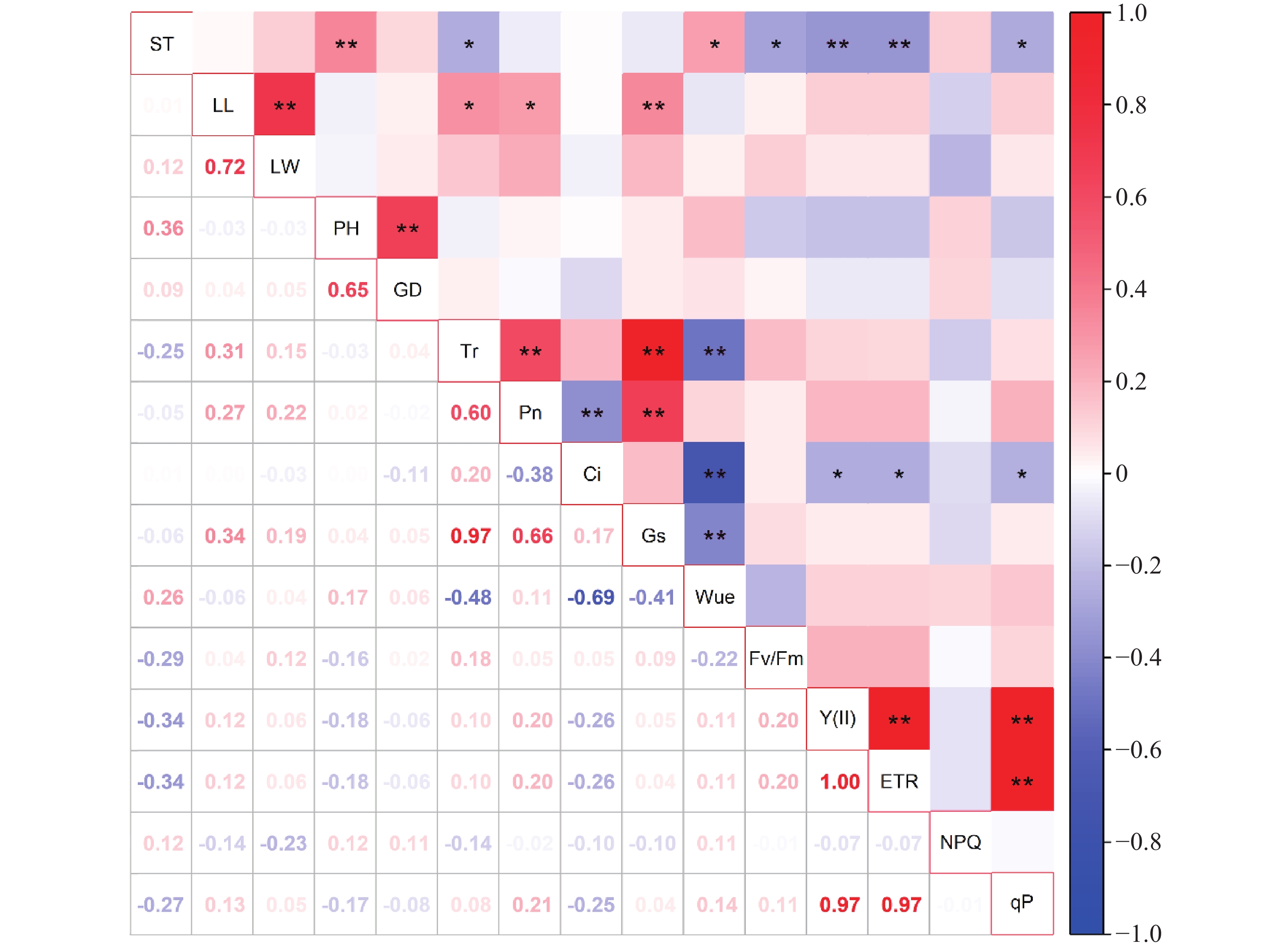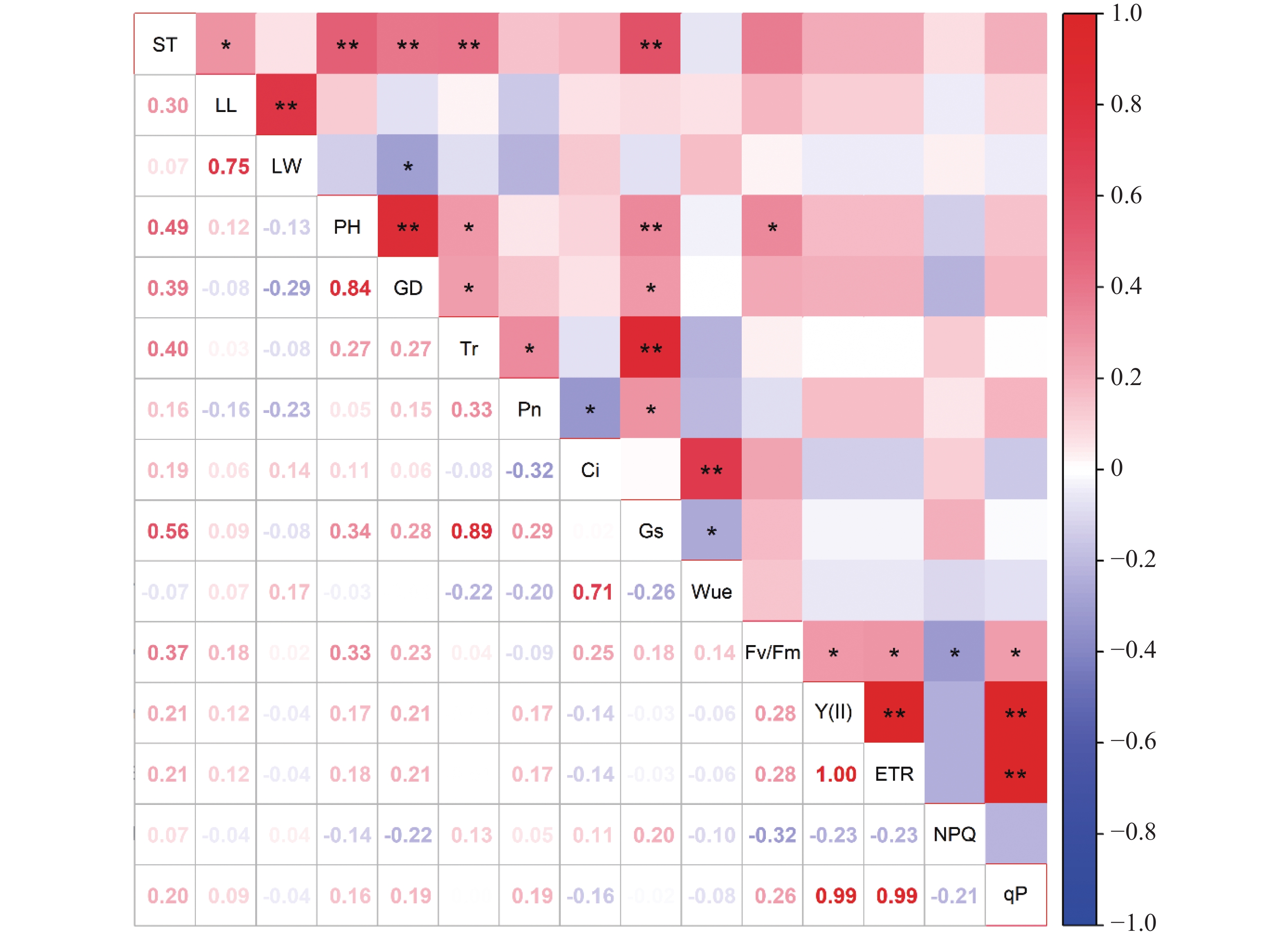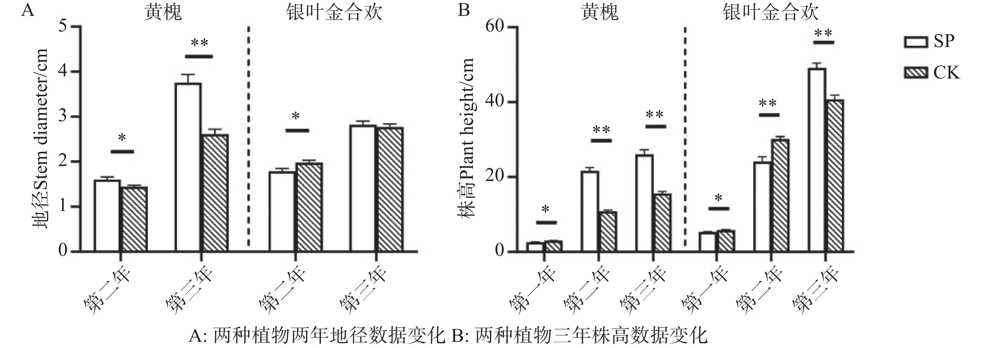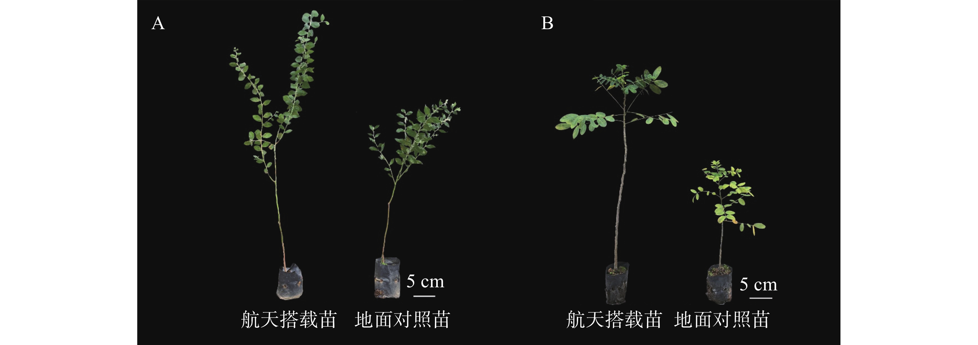 To investigate the effects of space mutagenesis treatment on the growth and physiological characteristics of Senna surattensis and Acacia podalyriifolia, container-grown seedlings were subjected to measurements of growth traits, leaf morphology, photosynthetic parameters, and chlorophyll fluorescence parameters following seed recovery via the new-generation manned spacecraft. Results indicated the treated S. surattensis group exhibited a 12.85% reduction in plant height during the first year, followed by highly significant increases of 100.66% and 66.34% in the second and third years, respectively. Its stem diameter at ground level increased significantly by 11.05% and 43.80% over two years, and its leaf length and width increased by 5.38% and 1.64%, respectively. In the treated A. podalyriifolia group, the plant height decreased by 9.59% and 20.06% in the first two years, then increased significantly by 20.72% in the third year; the stem diameter decreased by 9.71% in the second year and increased slightly by 1.81% in the third year; the leaf width increased by 6.79%, while the leaf length showed no significant change. Regarding to photosynthetic traits, the treated S. surattensis group exhibited a significant 27.58% increase in stomatal conductance (Gs), alongside elevated transpiration rate (Tr), net photosynthetic rate (Pn), and intercellular CO2 concentration (Ci). However, water use efficiency (WUE) decreased by 34.12%. The treated A. podalyriifolia exhibited a 43.11% improvement in WUE, with no significant changes in Pn and Ci, while Tr and Gs decreased by 25.94% and 7.33%, respectively. Regarding to chlorophyll fluorescence parameters, the treated S. surattensis group demonstrated an increase in maximum photochemical efficiency (Fv/Fm), apparent electron transport rate (ETR), non-photochemical quenching (NPQ), photochemical quenching (qP), and actual photochemical efficiency (Y (II))by 1.72%, 32.26%, 7.98%, 28.59%, and 31.92%, respectively, indicating enhanced photosynthetic capacity. In contrast, the ETR and Y (II)of the treated A. podalyriifolia decreased significantly by 24.89% and 24.96%, respectively, while only the NPQ increased by 8.56%, indicating suppressed light energy conversion efficiency. In summary, space mutagenesis treatment exerted significant effects on the growth and physiological characteristics of container-grown seedlings of the two species of woody ornamental plants, though the direction of mutagenesis varied between species.
