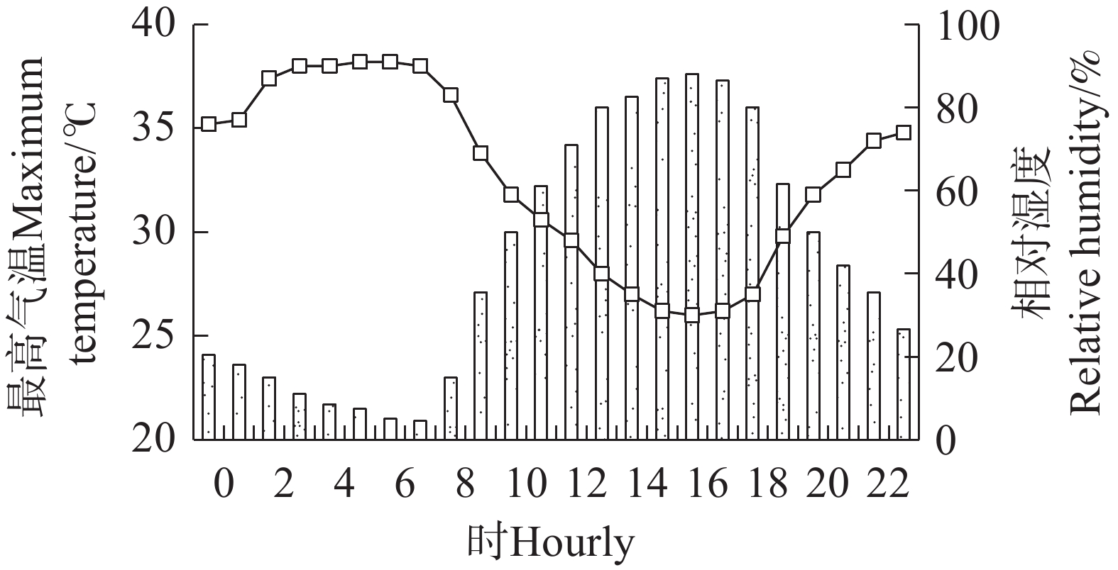 To effectively utilize climate resources and establish a long-term effective disaster prevention system to promote the healthy development of the durian industry in Hainan, the diurnal variation process of high temperatures was analyzed. The daily maximum temperature was selected as the primary meteorological factor, supplemented by relative humidity at 14:00 as secondary indicators, to characterize high temperature disasters. The percentile threshold method was used to construct classification indices for daily high temperature disasters, process-based high temperature disasters, and annual high temperature disaster types for young durian trees. The results showed that from 2015 to 2024, the number of days affected by high temperature disasters for young durian trees in major durian cultivation areas of Hainan ranged from 7.2 to 81.7 days, that the total frequency of process-based high temperature disasters ranged from 1.1 to 10.7 times, and that annual high temperature disaster types ranged from mild to severe and above. Based on comprehensive analysis of indicators including total high temperature days, days with severe and above disasters, total frequency of disaster processes, frequency of severe and above processes, and annual disaster classification, high temperature disasters were more severe in northern durian cultivation areas than in southern areas, with the distribution pattern being in the order of Chengmai > Sanya > Ledong > Baoting > Lingshui. The probability of young durian trees encountering high temperature disasters during growth in Hainan is substantial; therefore, priority should be given to implementing high temperature disaster prevention measures in cultivation practices, modifying local microclimate conditions in durian orchards, and reducing high temperature damage to durian trees.