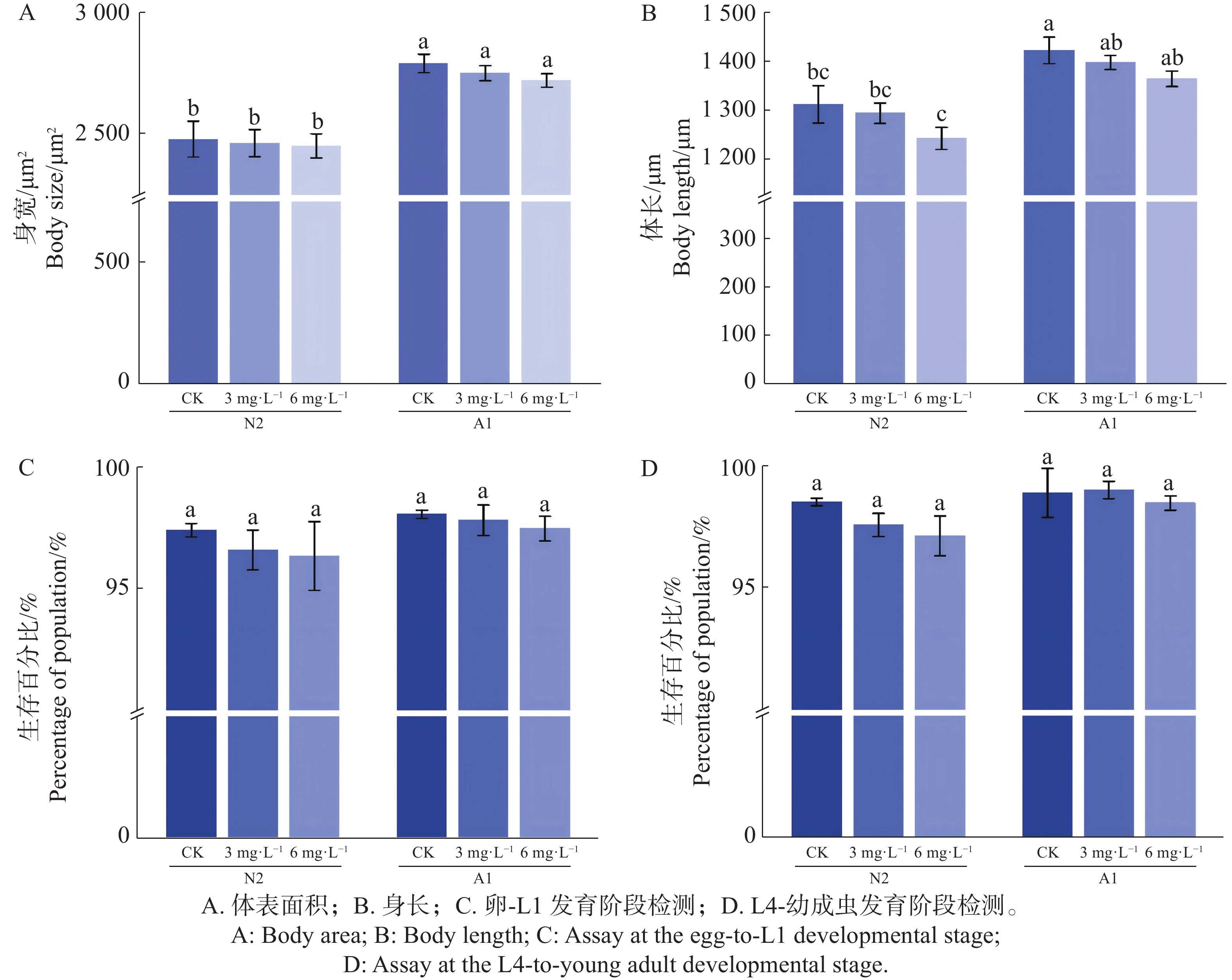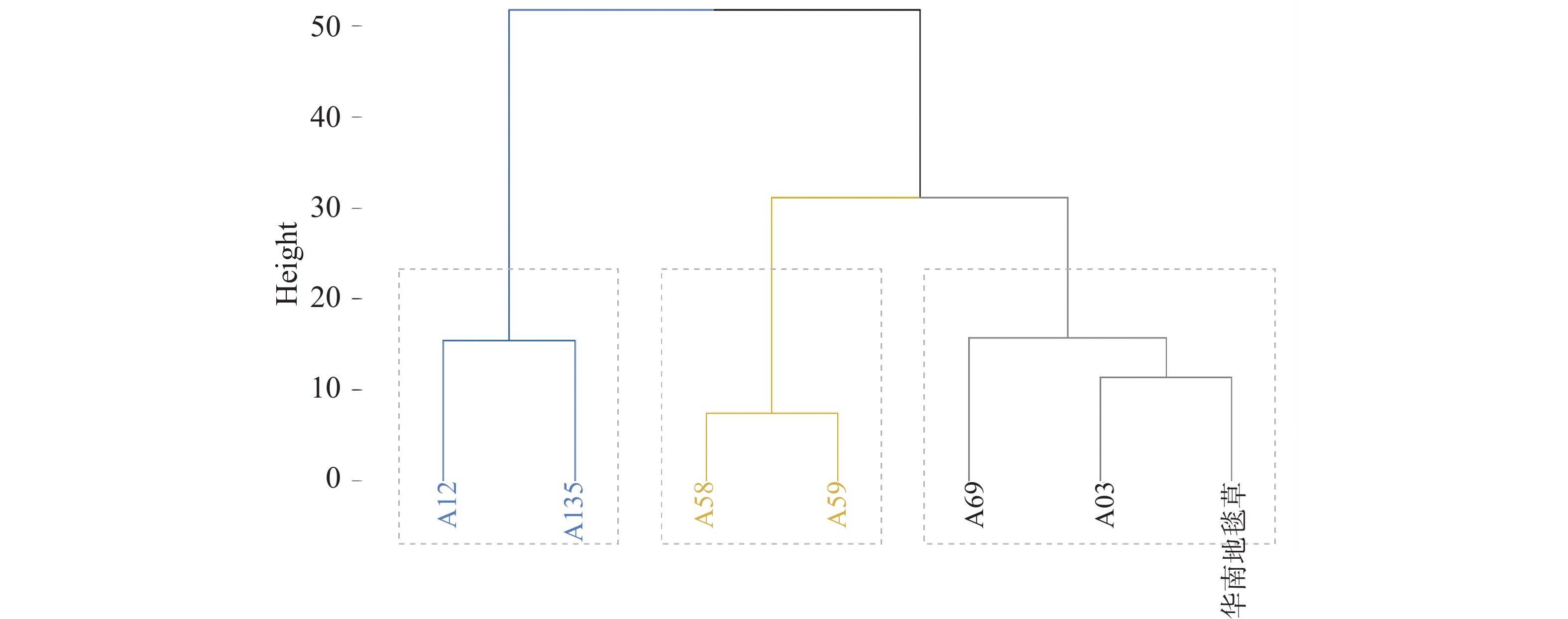To investigate the shade tolerance of Axonopus compressus, shade tolerance evaluation was performed on six accessions of superior Axonopus compressus germplasm (A03, A12, A58, A59, A69, A135) with Axonopus compressus ‘Huanan’ as the control variety, so as to provide a theoretical basis for breeding shade-tolerant varieties of A. compressus. A. compressus was treated with 75% shading or natural light under hydroponic culture and 18 indicators including chlorophyll content, leaf length, leaf width, biomass, and turf quality were measured after 28 days of treatment for comprehensive evaluation. The results show that compared to the control group, the 75% shading stress treatment, significantly increased the leaf length, but significantly decreased, leaf width, chlorophyll content, turf height, biomass, and turf quality of A. compressus. Comprehensive analysis showed that the germplasm accessions were classified into three categories: shade-tolerant, moderately shade-tolerant, and shade-sensitive. Among them, Accession A69 exhibited the highest shade tolerance and was listed in, the shade-tolerant category along with Accession A03 and the control variety; Accessions A58 and A59 were listed in the moderately shade-tolerant category; Accessions A12 and A135 were listed in the shade-sensitive category, demonstrating the poorest shade tolerance.