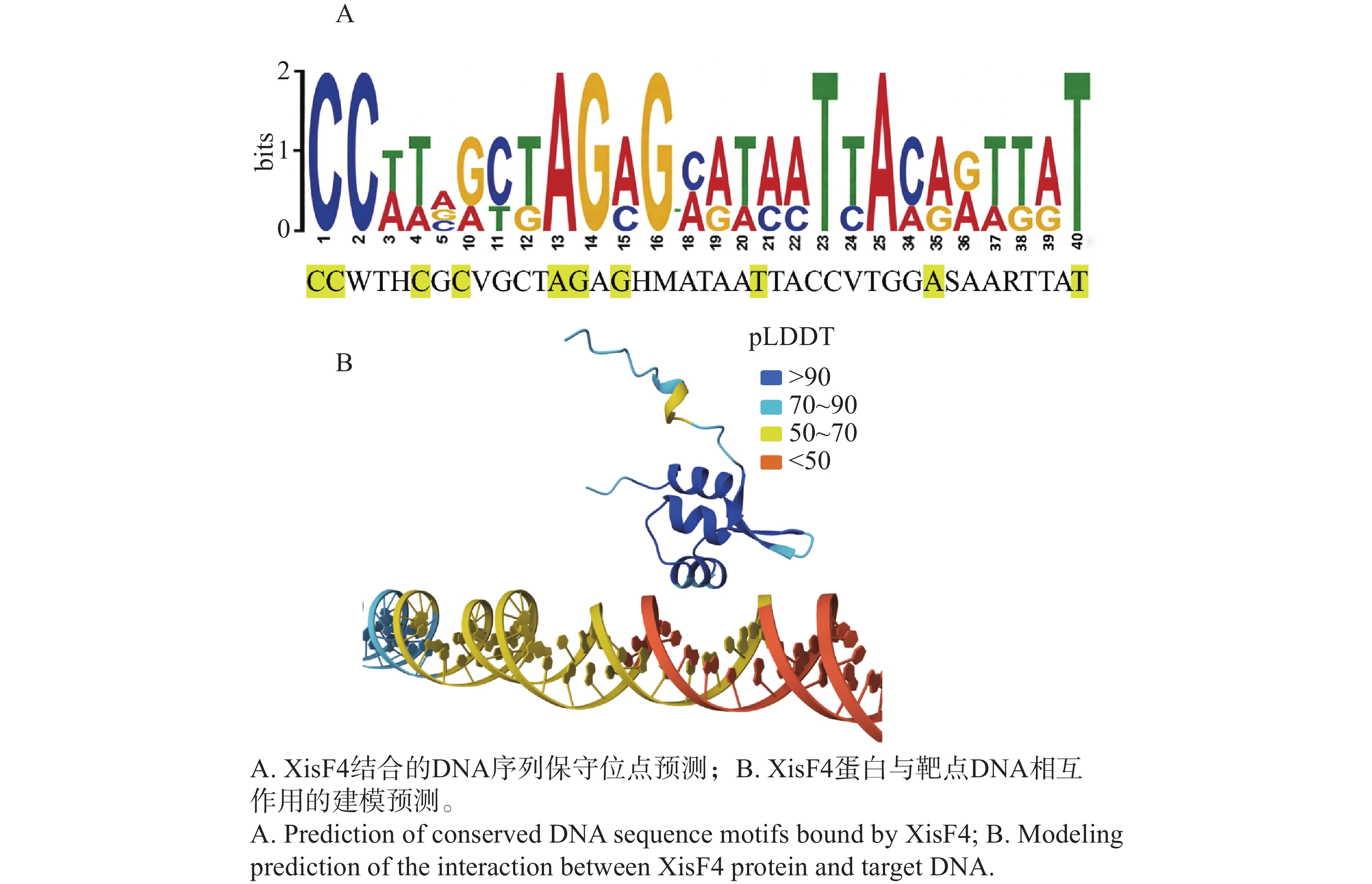The excisionase XisF4, encoded by the filamentous bacteriophage Pf4, is a key protein mediating prophage excision and transcriptional regulation. The molecular characteristics and biological functions of the excisionase XisF4 were systematically elucidated through the integration of bioinformatics, proteomics, and evolutionary analyses. Bioinformatics analysis revealed that XisF4 consists of 71 amino acids and contains a typical MerR-type helix-turn-helix DNA-binding domain. Induced expression and proteomic analysis showed that XisF4 expression led to the differential expression of 94 host proteins, significantly enriched in pathways such as glycine metabolism, biofilm formation, and pyocyanin biosynthesis, while simultaneously inhibiting the expression of proteins associated with the type VI secretion system (e.g., HcpC) and DNA replication. RT-qPCR validated transcriptional changes in key genes, and further EMSA experiments confirmed that purified XisF4 protein directly binds to the promoter regions of host genes phz2 and hcpC, demonstrating its direct transcriptional regulatory capability. Phylogenetic analysis revealed that XisF4 and XisF5 belong to distinct evolutionary branches, and that their evolutionary trajectories differ from that of the bacteriophage capsid protein CoaA, suggesting that independent genetic events may have occurred between the regulatory and structural modules of filamentous bacteriophages during evolution. All the results demonstrate that XisF4 is not only a key enzyme for bacteriophage excision but also functions as a pleiotropic transcriptional regulator, extensively involved in regulating virulence, metabolism, and stress adaptation in the host Pseudomonas aeruginosa. These findings provide an important theoretical foundation for a deeper understanding of bacteriophage-host interaction mechanisms and the development of potential intervention strategies.