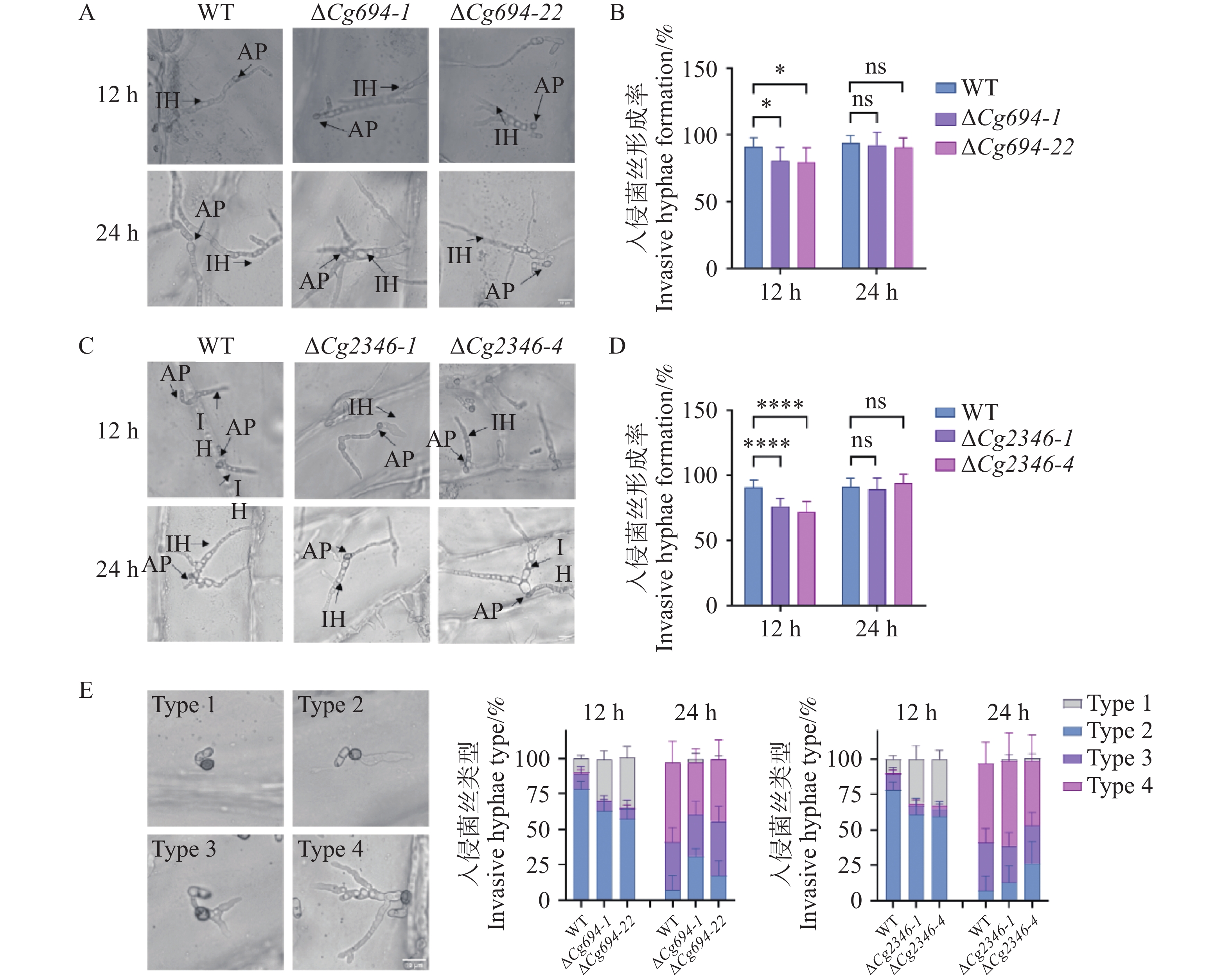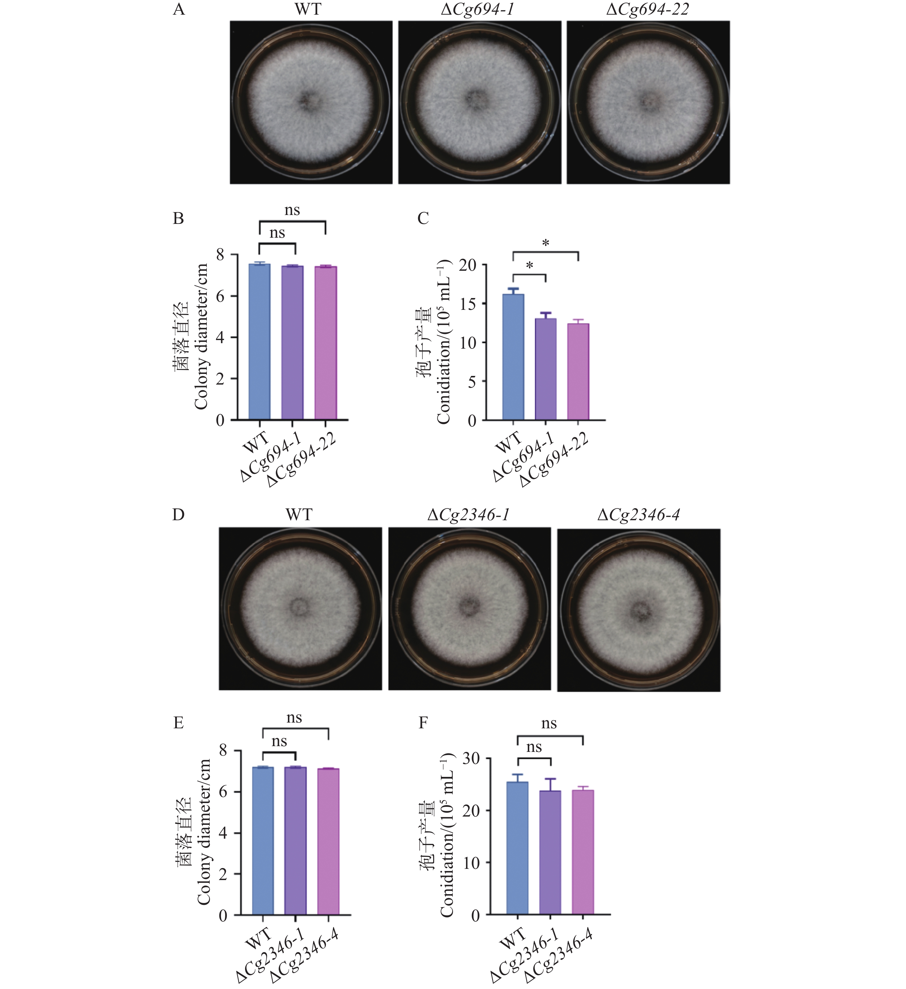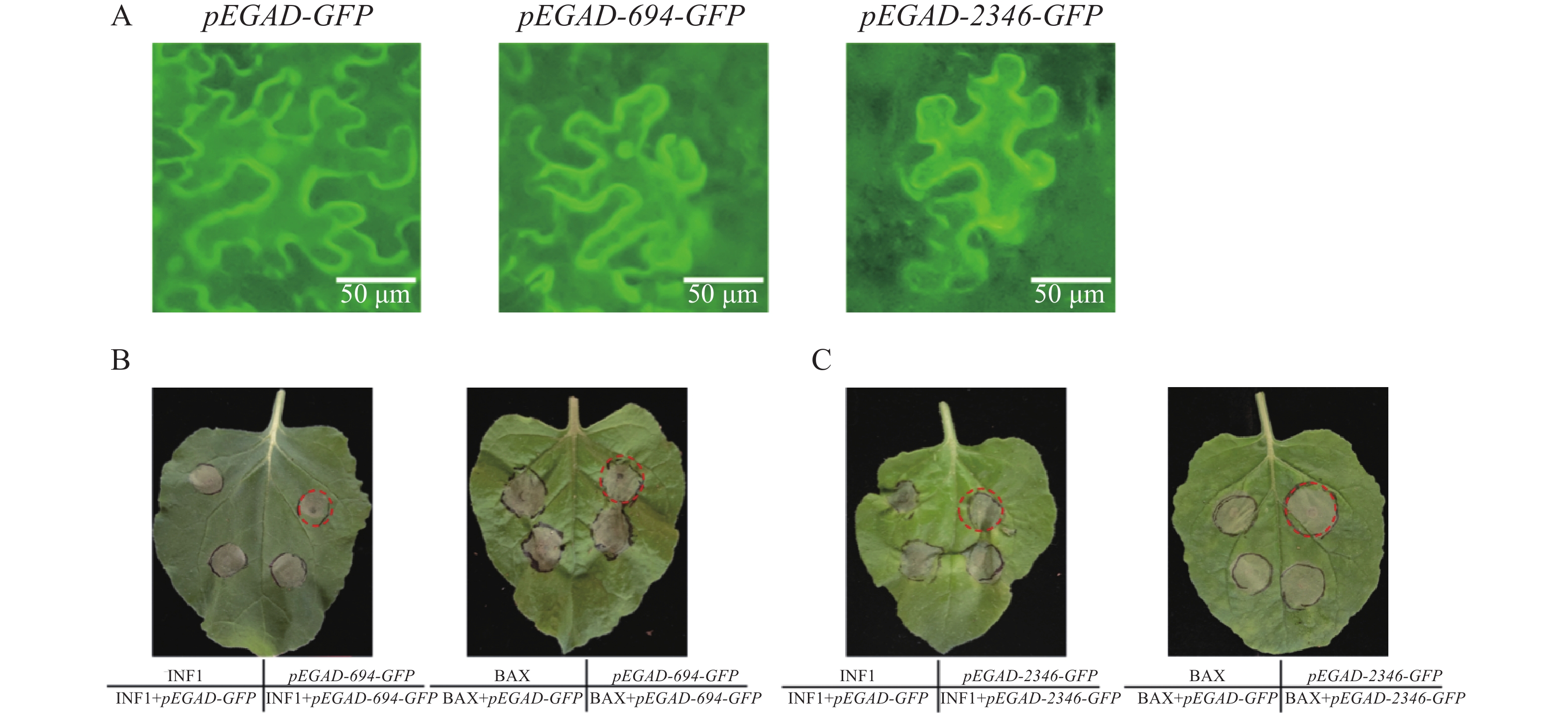 胶胞炭疽菌(Colletotrichum gloeosporioides)在对橡胶树的侵染过程中会分泌许多蛋白效应子,但是目前关于它们在克服植物免疫中发挥的作用仍知之甚少。开展橡胶树胶孢炭疽菌潜在效应蛋白的研究可以为炭疽病害的防治提供理论基础。本研究在橡胶树胶孢炭疽菌中预测到2个潜在效应蛋白Cg694和Cg2346,实时荧光定量分析显示,与胶孢炭疽菌营养菌丝阶段相比,Cg694和Cg2346基因在孢子、萌发和附着胞发育阶段表达量显著上调。通过烟草(Nicotiana benthamiana)表皮细胞中瞬时表达体系(绿色荧光蛋白Green fluorescent protein)对其亚细胞定位情况进行了观察,结果发现,Cg694和Cg2346基因均定位在细胞核和细胞膜,且它们的瞬时表达会诱导烟草叶片出现坏死。随后,分别构建了这2个基因的敲除突变体ΔCg694和ΔCg2346,并对其营养生长以及致病相关表型进行了分析。研究发现,ΔCg694和ΔCg2346基因敲除突变体的萌发芽管极性生长的能力增强、在洋葱(Allium cepa)表皮细胞中的前期的入侵菌丝形成率降低,其中,ΔCg2346突变体的附着胞形成能力降低,但ΔCg694和ΔCg2346突变体对橡胶树叶片上的致病力均没有出现显著变化。实验结果显示,Cg694和Cg2346会引起胶胞炭疽菌的芽管极性生长能力增强和前期入侵能力减弱等表型的改变,但其潜在的功能有待进一步研究。