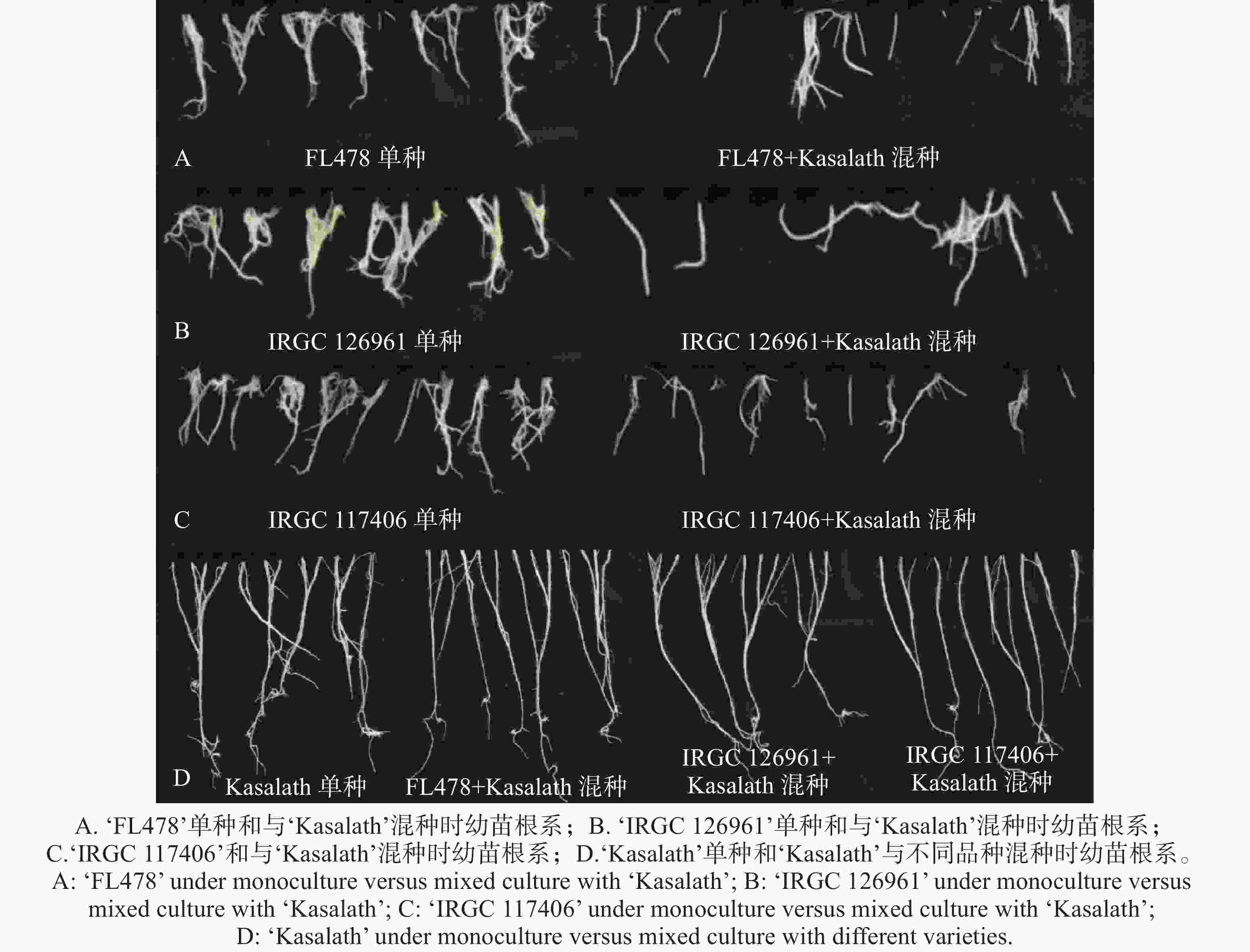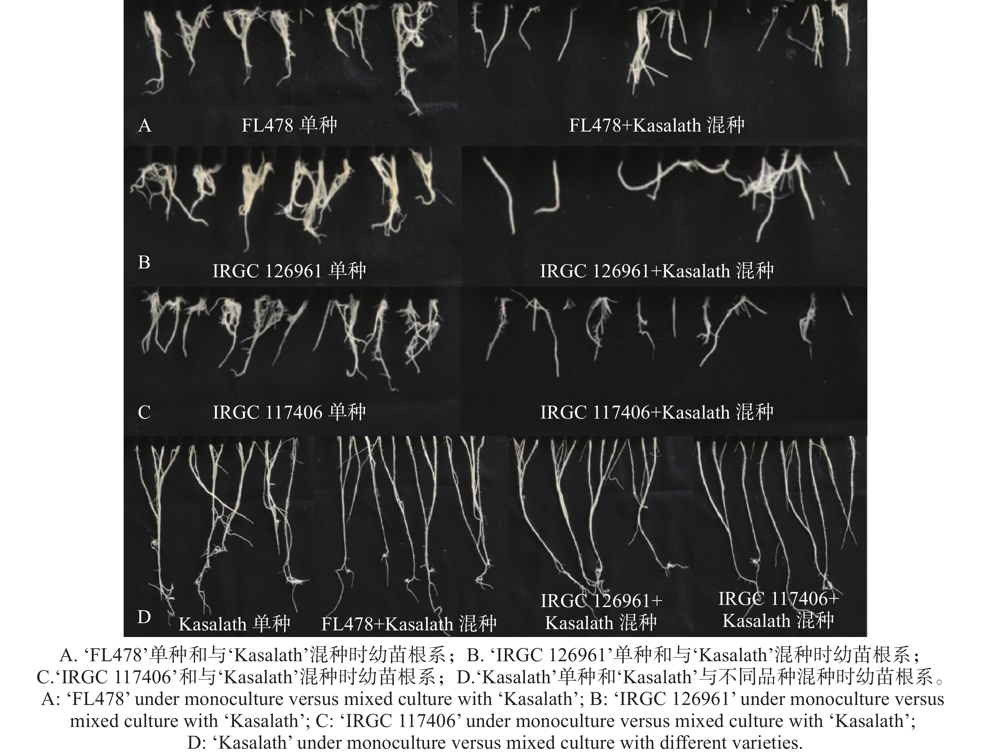 水稻(Oryza sativa)品种在幼苗期的根际互作对群体结构建成与资源获取具有重要影响,为了探究其化学生态机制,在可控条件下,通过配对混种试验,比较了‘Kasalath’与‘FL478’、‘IRGC