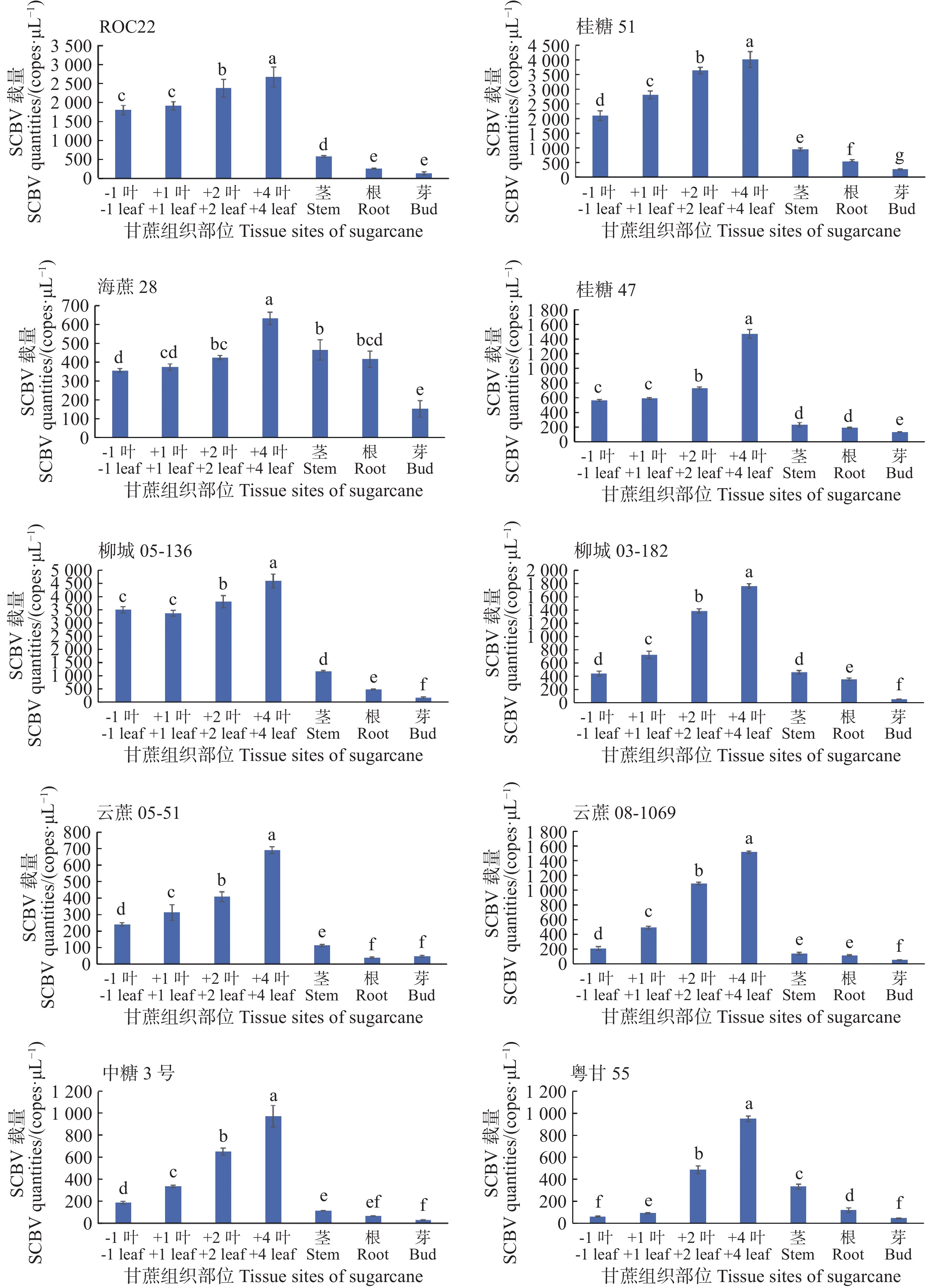 An attempt was made to establish an absolute quantitative real-time PCR method for the detection of sugarcane baculovirus (SCBV) to determine the load of SCBV in different tissue parts of sugarcane. Specific amplification primers were designed from the conserved region of the SCBV genome (SCBV-ORF1), and the recombinant plasmid pMD19T-SCBV-P1 was constructed as a positive plasmid standard and used as a template to establish an absolute quantitative real-time PCR detection method for SCBV. This established detection method was tested in sensitivity, specificity and stability and then used to determine the SCBV load in different tissues of sugarcane germplasm. The recombinant plasmid containing the SCBV genomic sequence was diluted 10 times into a standard, and it was used as a template for quantitative real-time PCR. The standard curve y=
