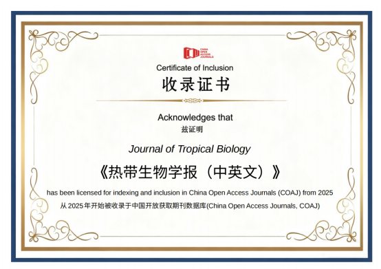 这一跨越式进展,与海南自贸港建设的步伐同频共振。恰逢海南自贸港封关运作正式启动,“一线放开、二线管住”的开放新格局,为扎根海南的本刊带来了汇聚全球顶尖科研资源、深化热带生物特色研究的全新机遇。展望2026年,本刊将以入选COAJ等数据库为全新起点,依托海南自贸港的开放红利与区位优势,继续坚守学术初心、严把质量关口,全力推动中国热带生物领域的前沿成果与国际学界深度对话、交融互鉴,携手全球研究者共同探索热带生物多样性保护与可持续发展的创新之路。