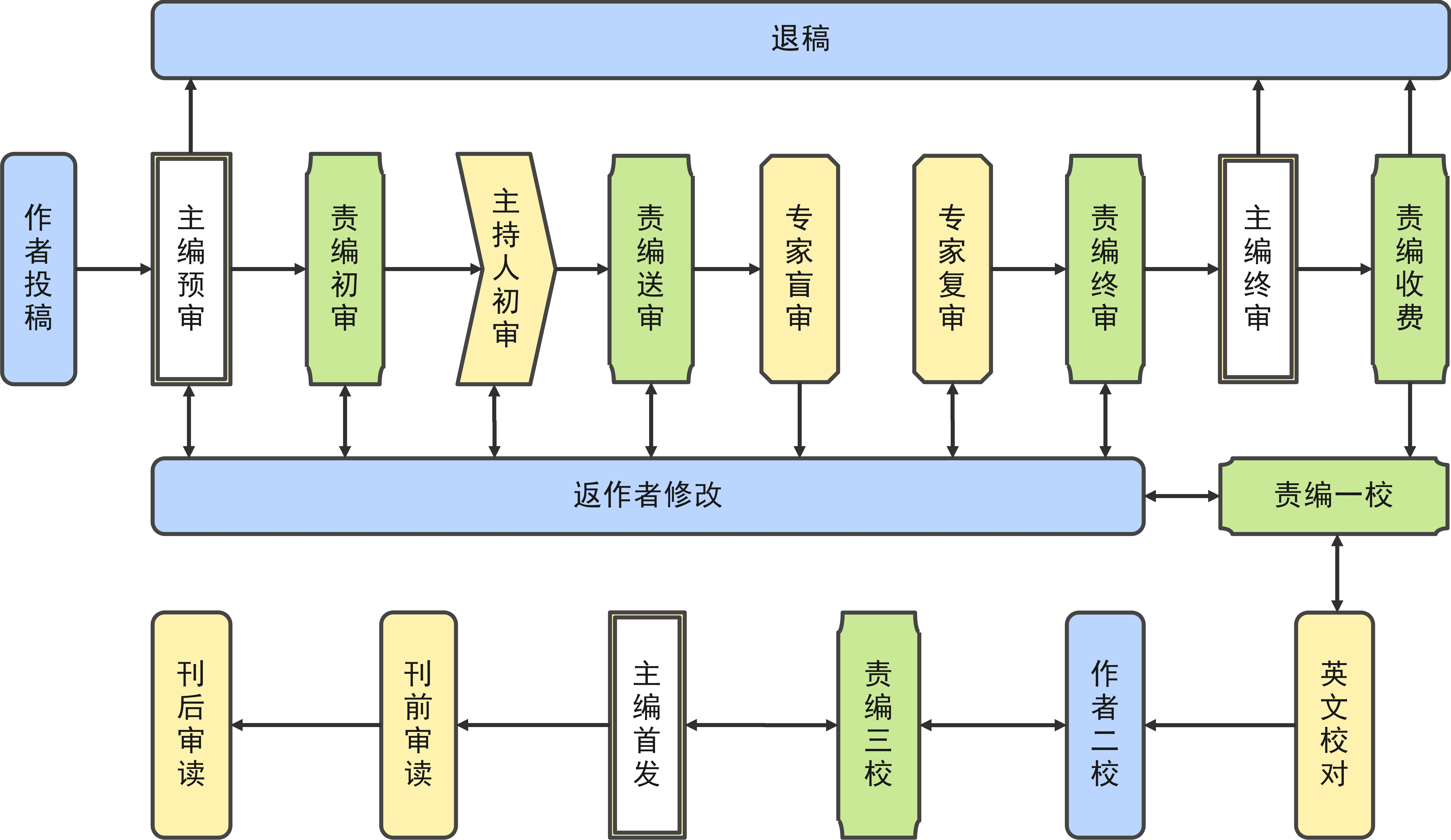 6. 专家盲审:参考周期为14天;审稿意见返回责编(对作者不可见),由责编反馈作者。